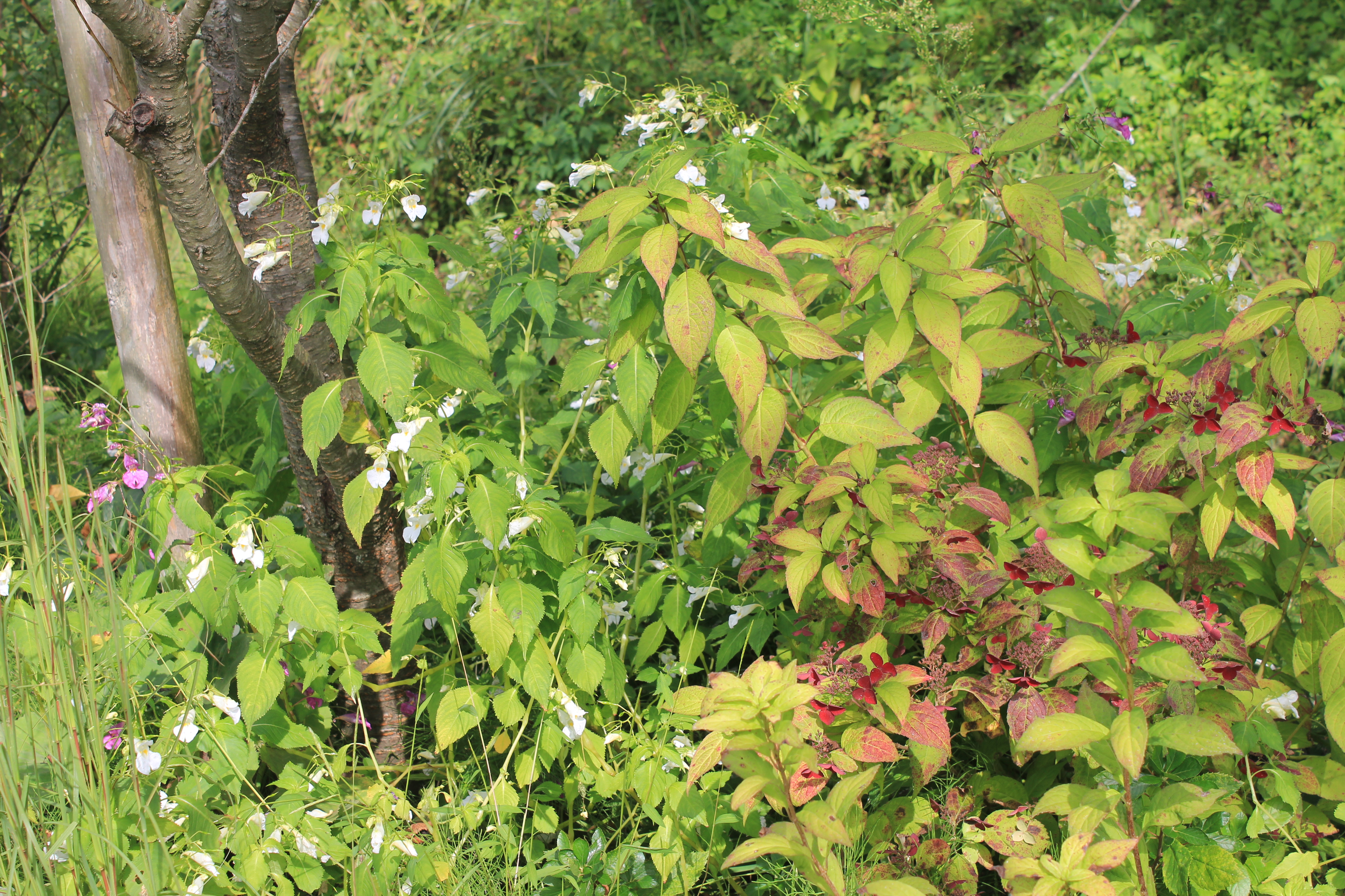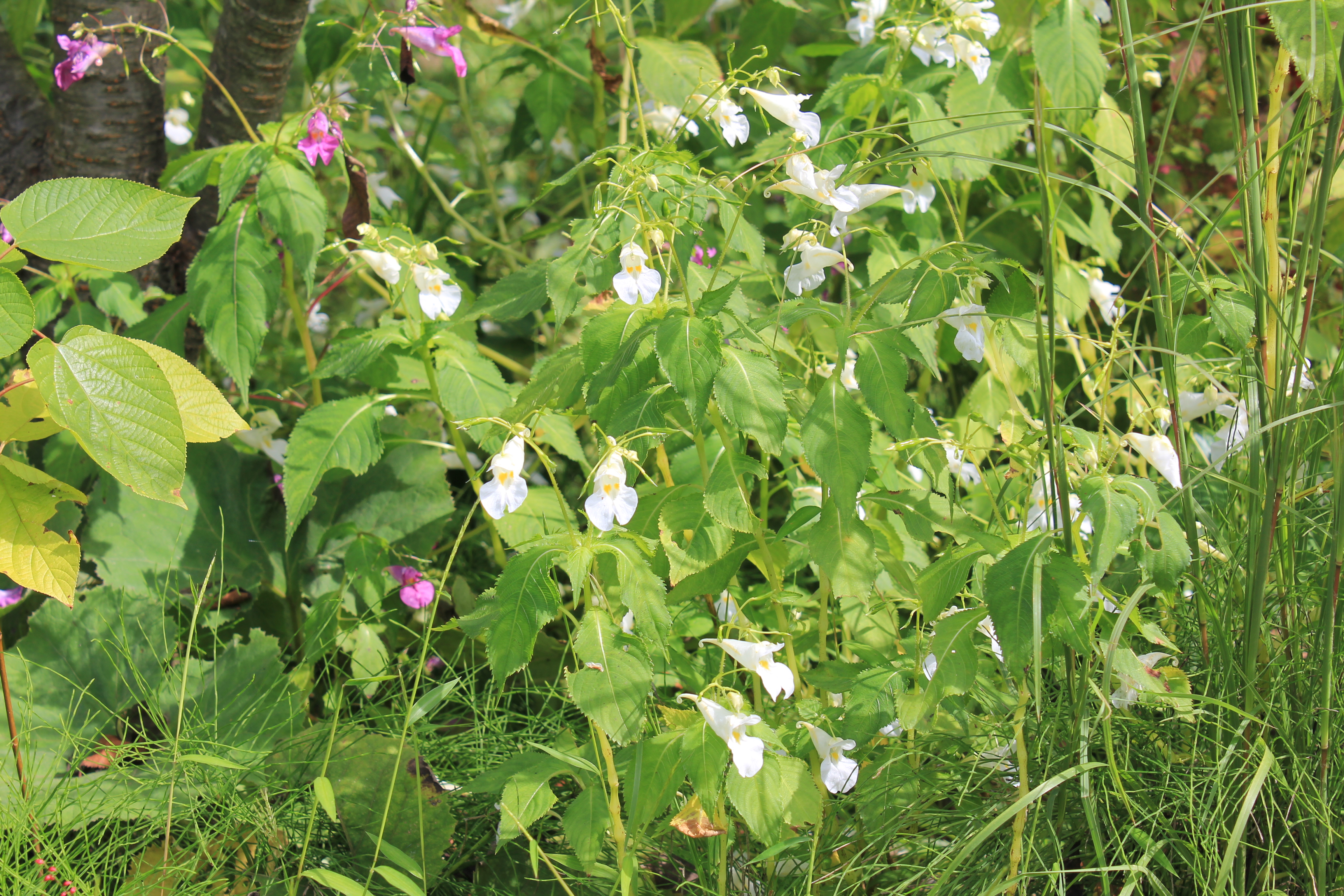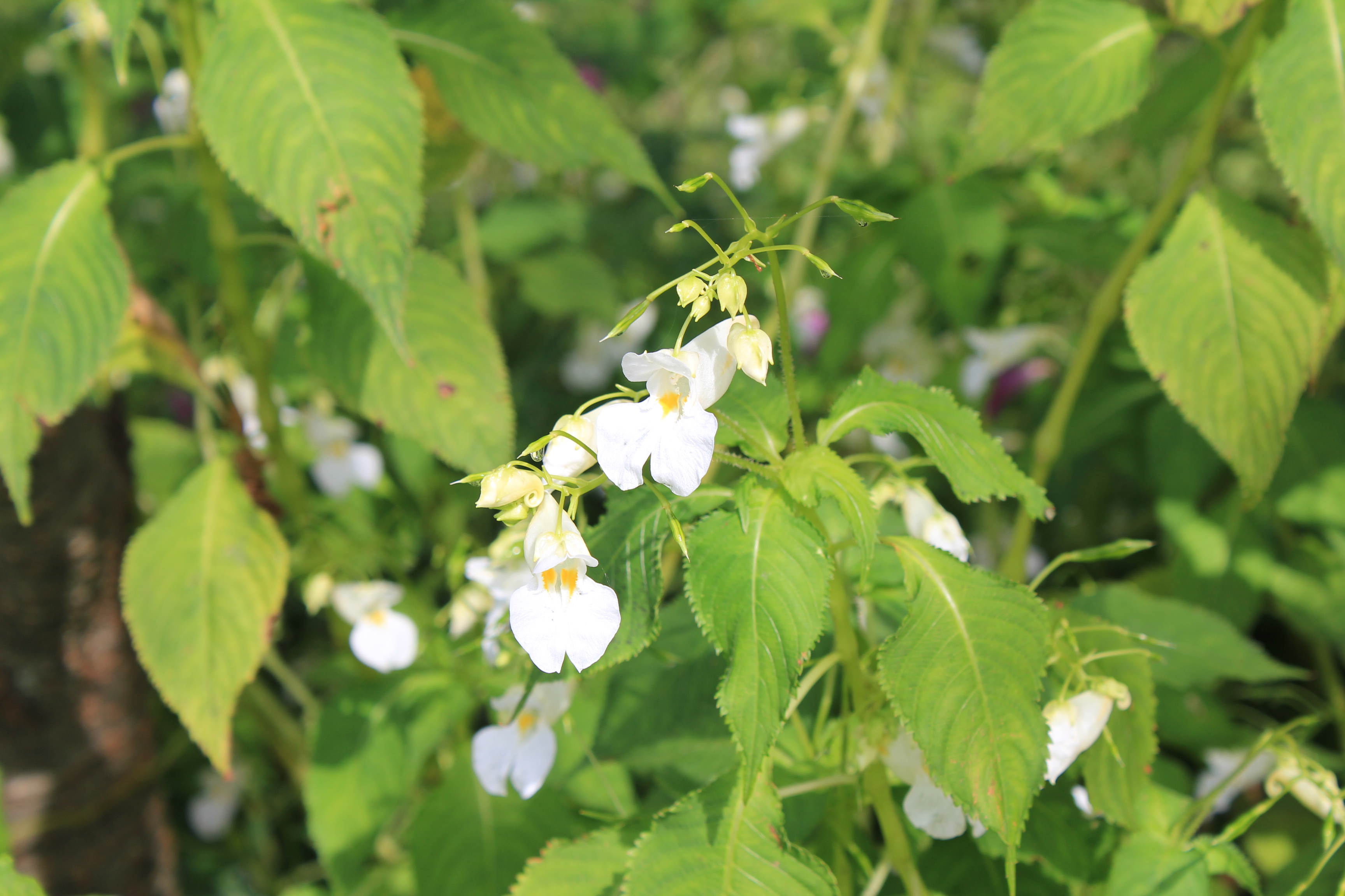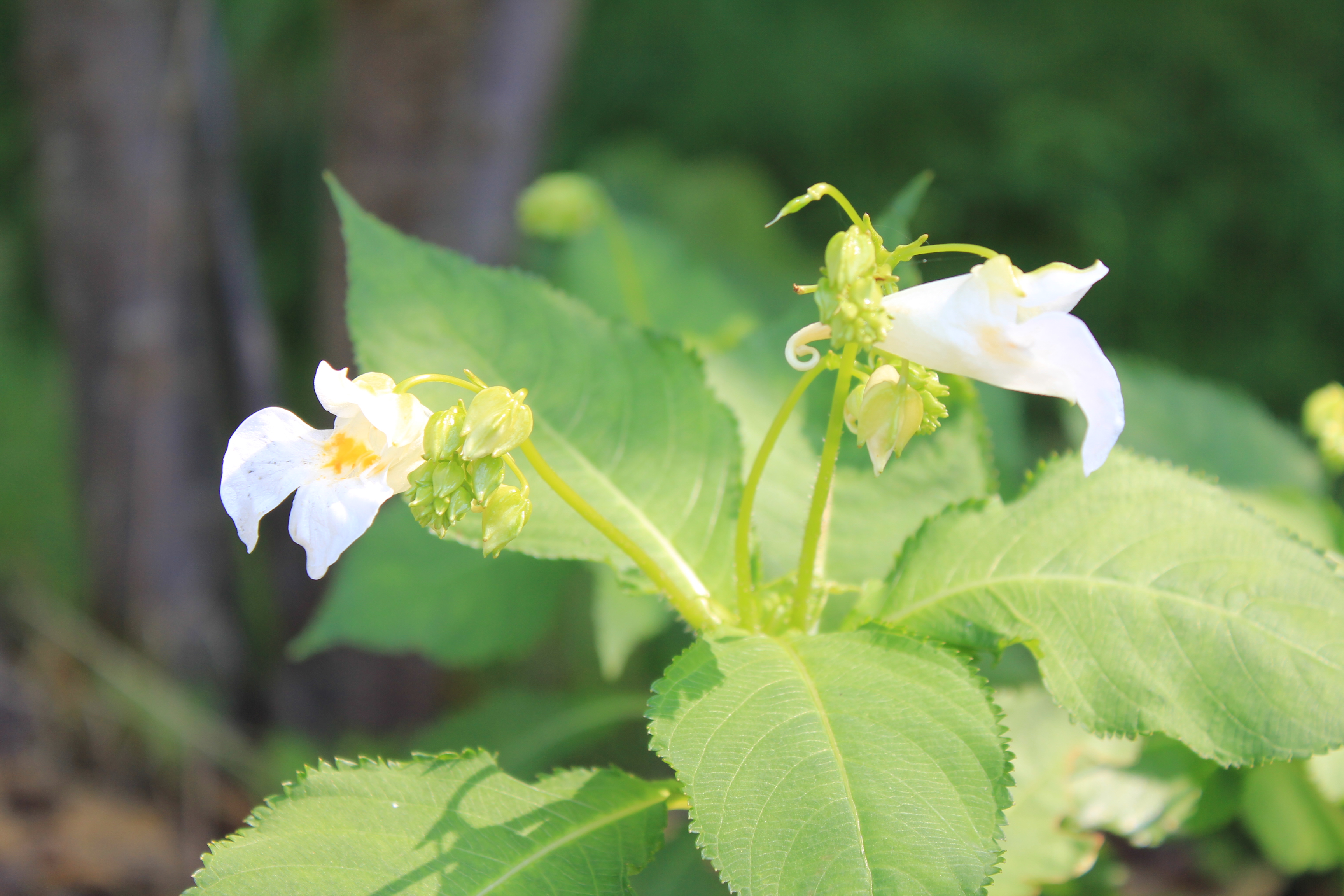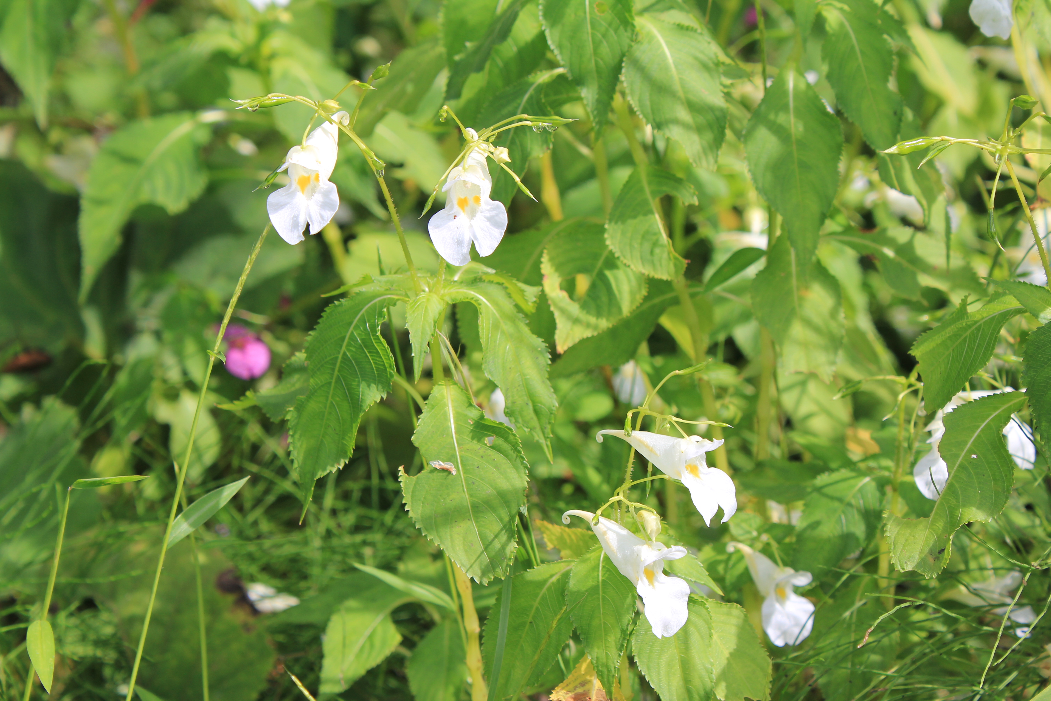 概要:湿地や日陰に生える。林縁や林の下でよく見られる。ツリフネソウ(ムラサキつりふね:Impatiens Textori Miq. 和名の由来は「釣船草」の意味で、花の形が帆かけ船をつり下げたように見えることによる。)は赤紫色、キツリフネ(Impatiens noli-tangere L. 和名の由来は「黄釣船」で、花の黄色いツリフネによる。)は、黄色花を開花させるが、本種は珍しく白色花となる。