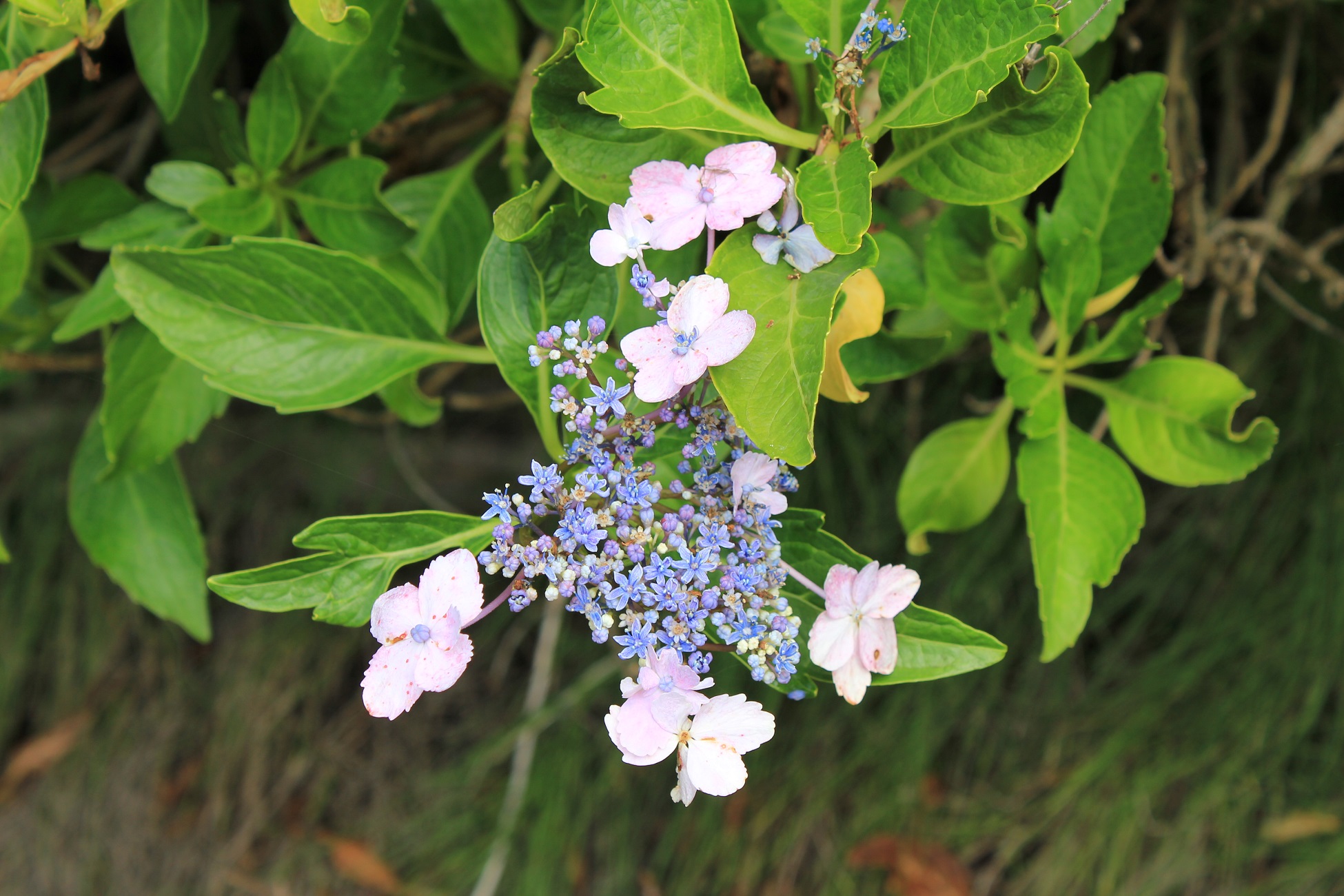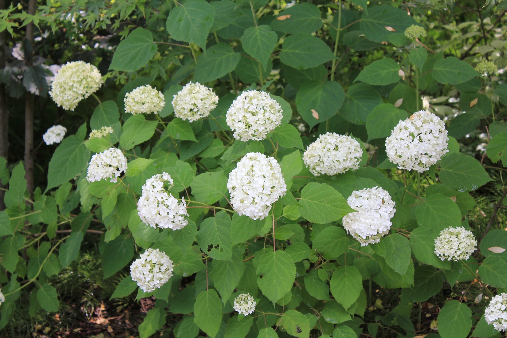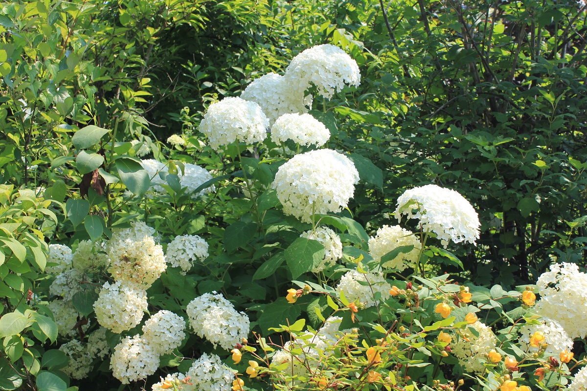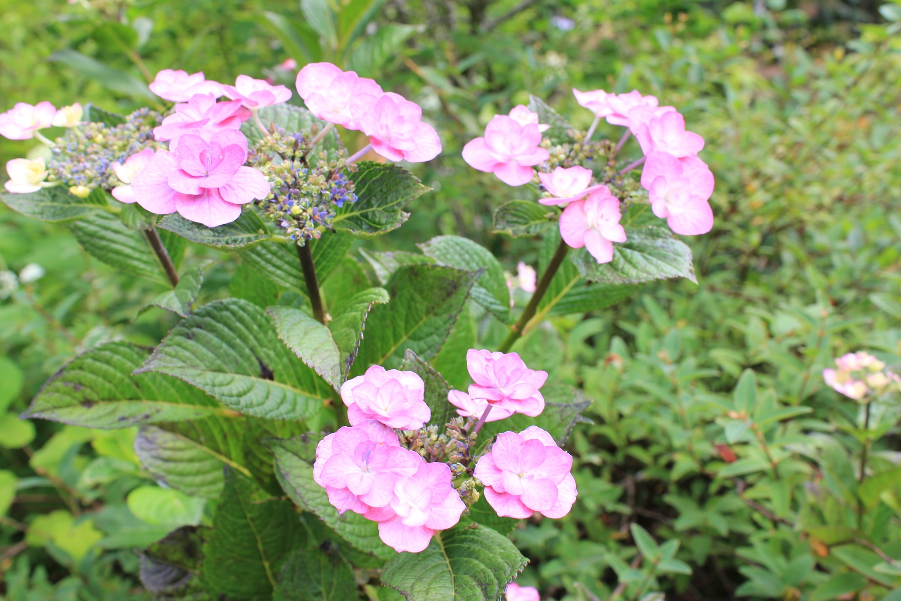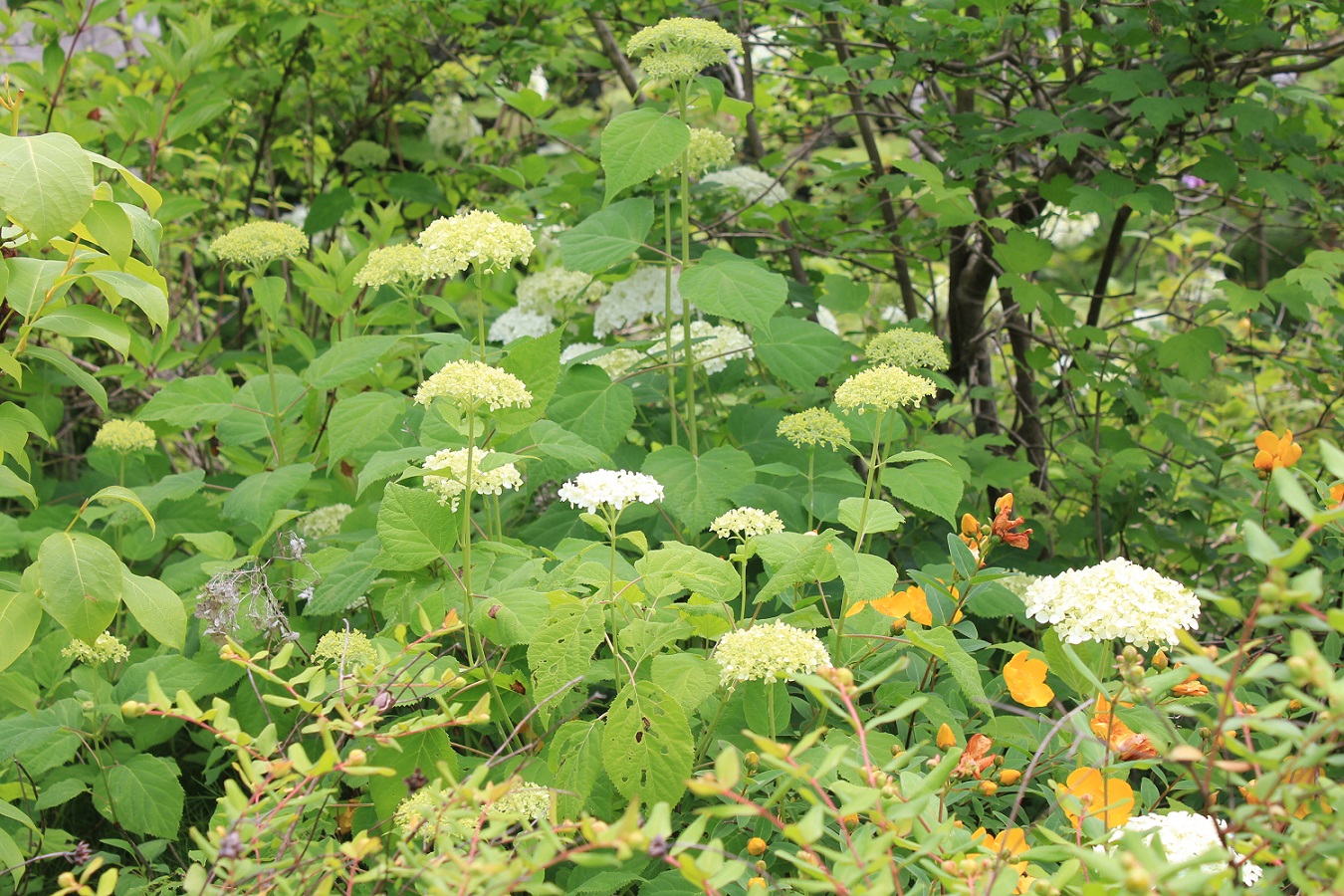 概要:ヤブデマリの花がすべて装飾花になった園芸品種。5~6月頃、ピンクと白の咲分けとなる手まり状の花をつける。2色の花もある。性質は丈夫で、庭園樹としての利用が多い。