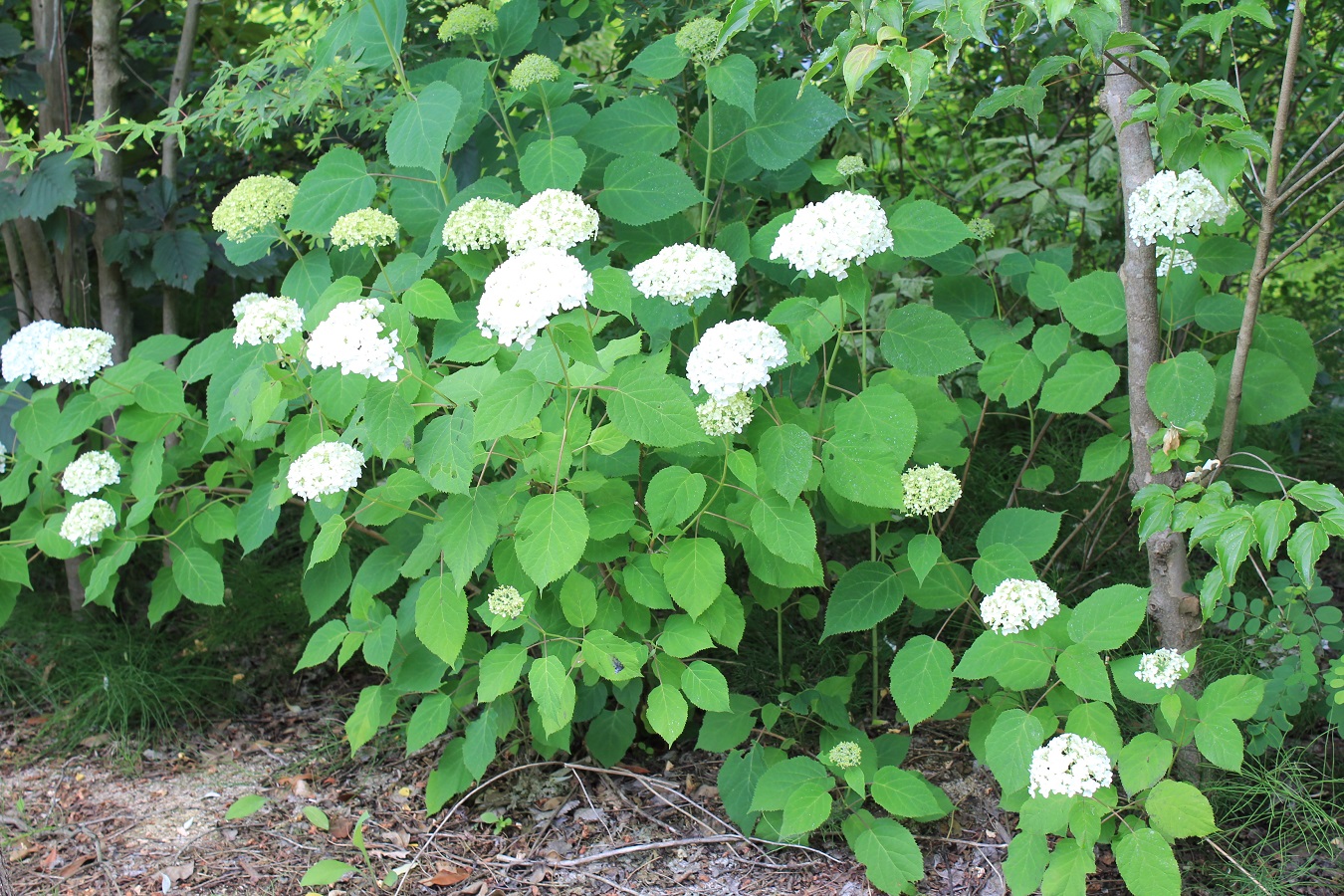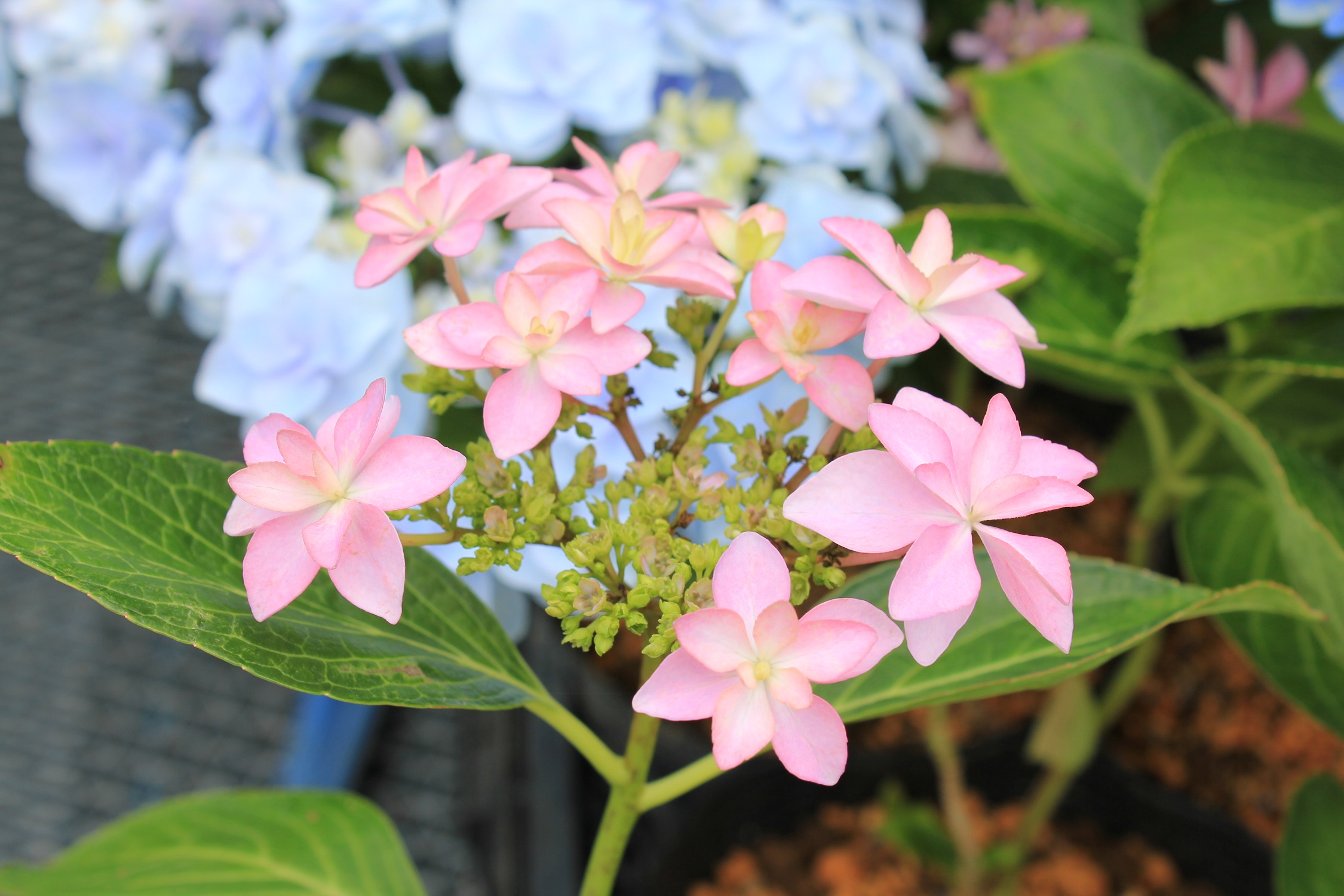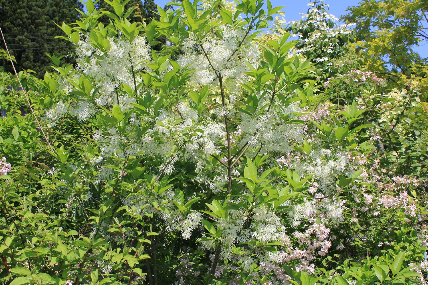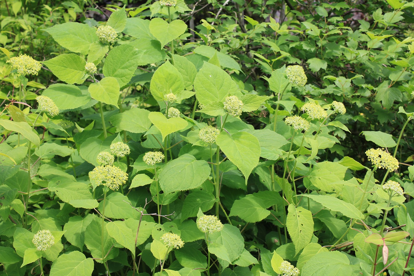 概要:ヤブデマリの花がすべて装飾花になった園芸品種。5~6月頃、ピンクと白の咲分けとなる手まり状の花をつける。2色の花もある。性質は丈夫で、庭園樹としての利用が多い。