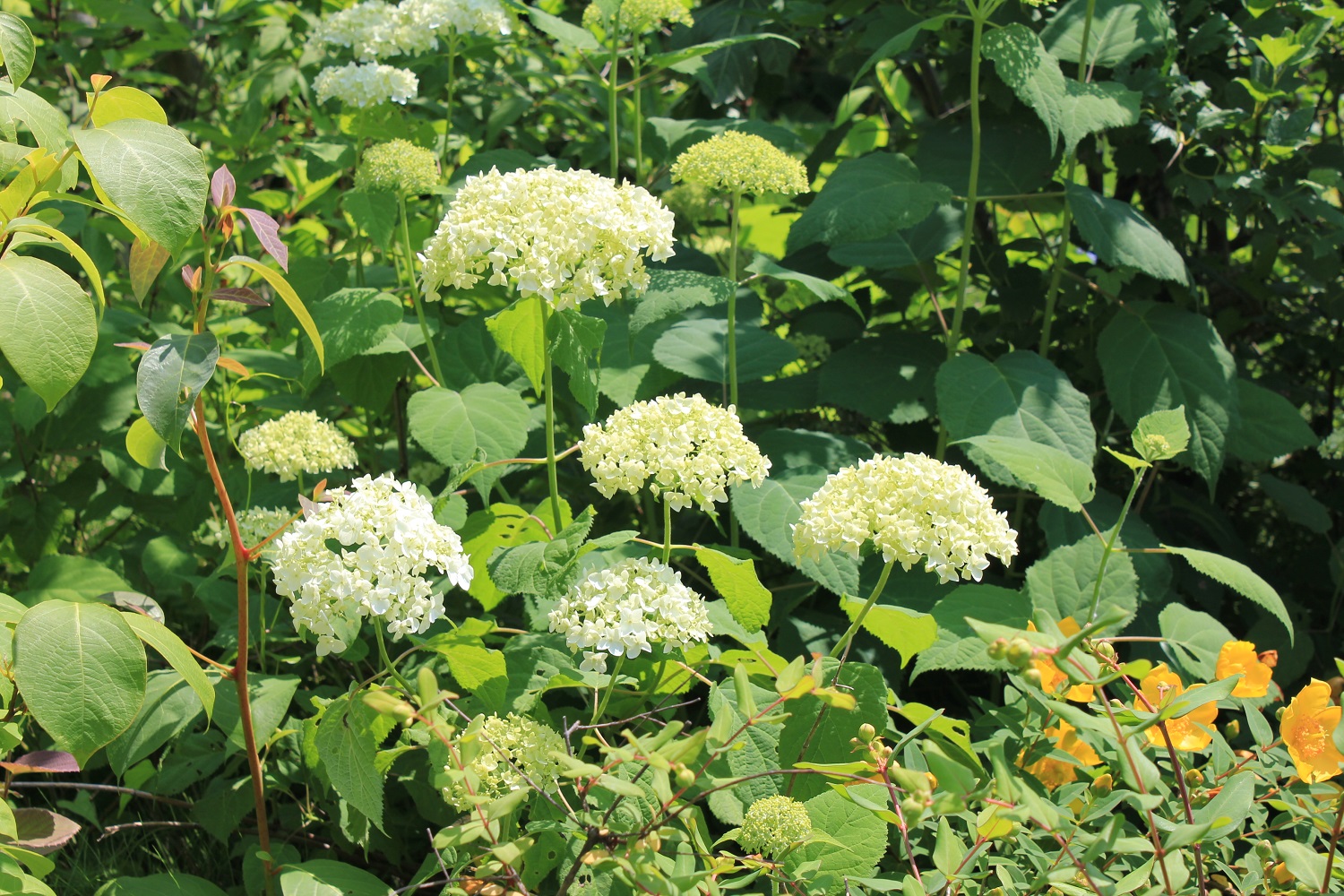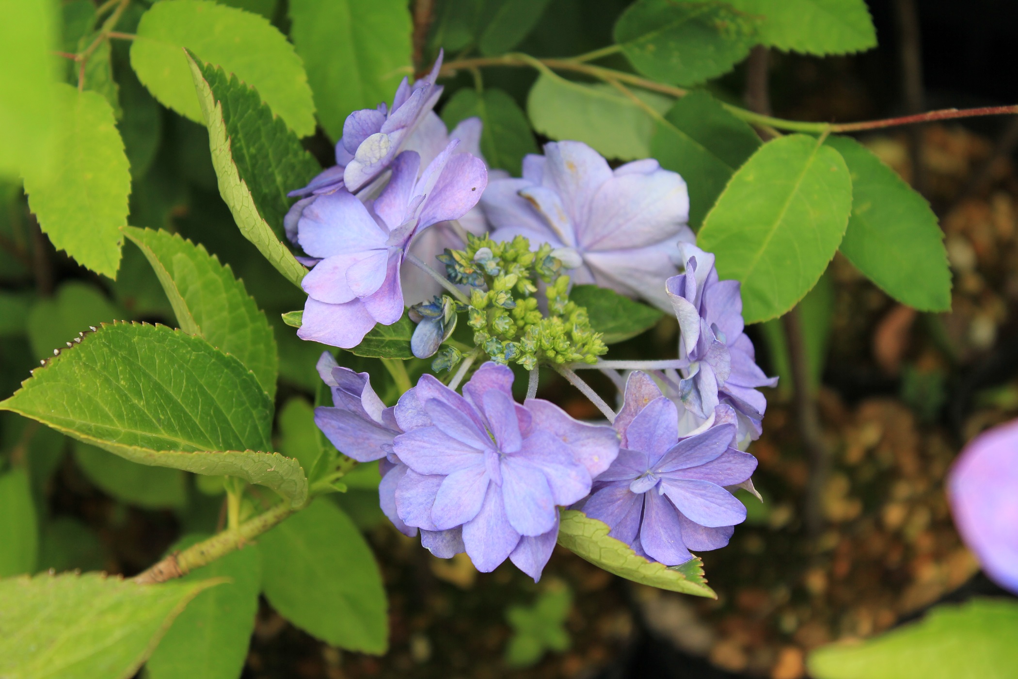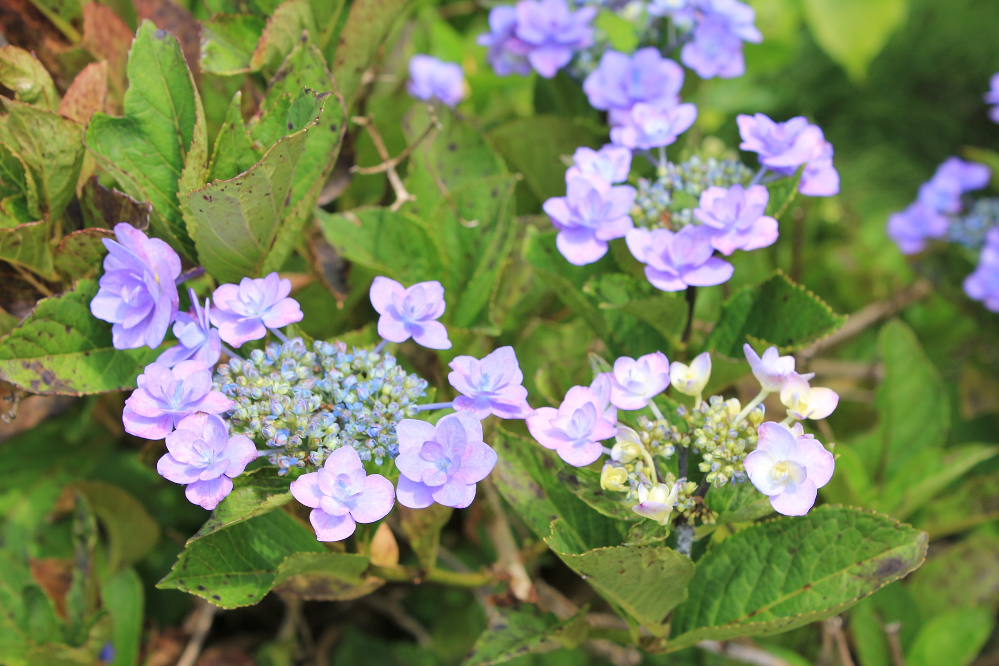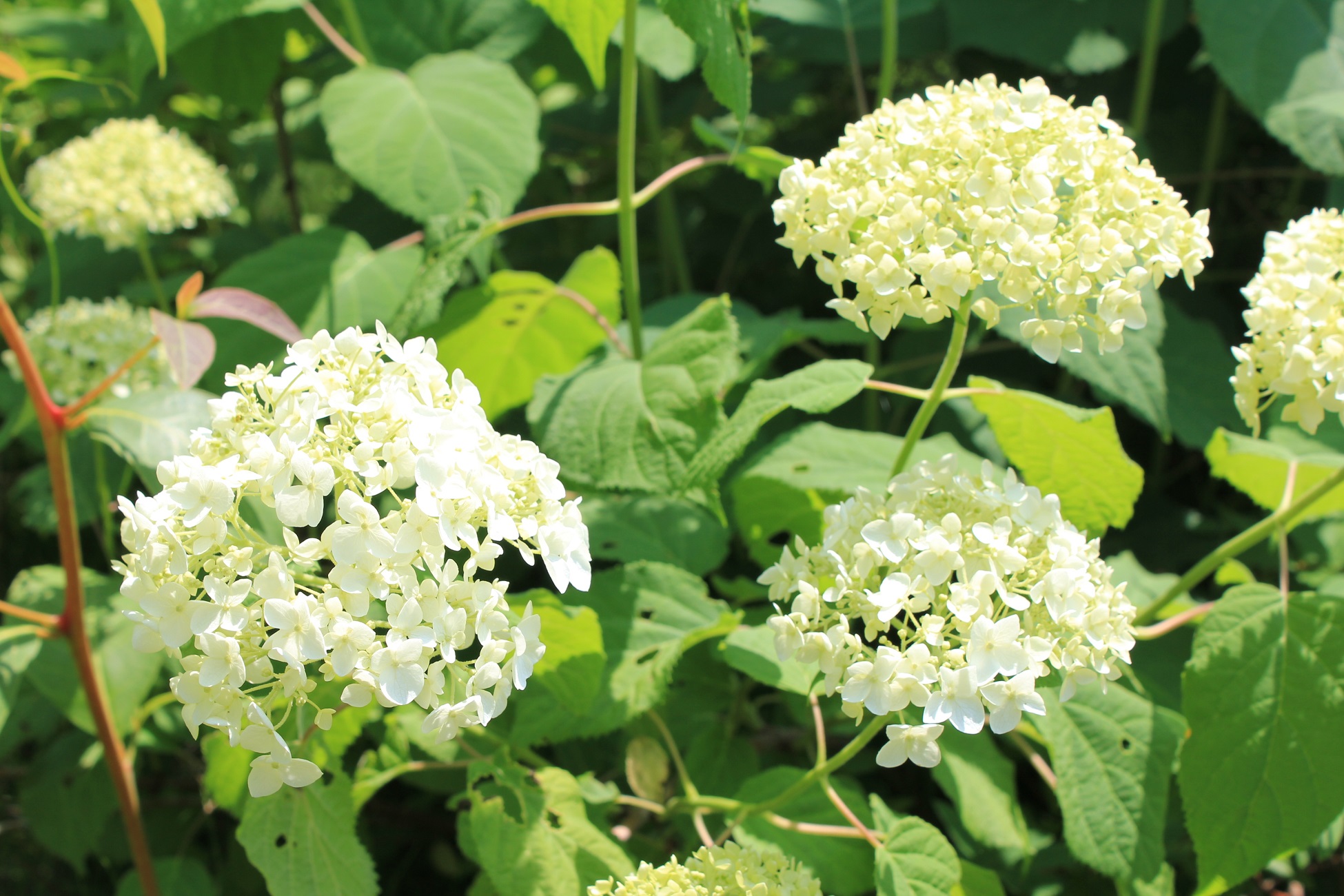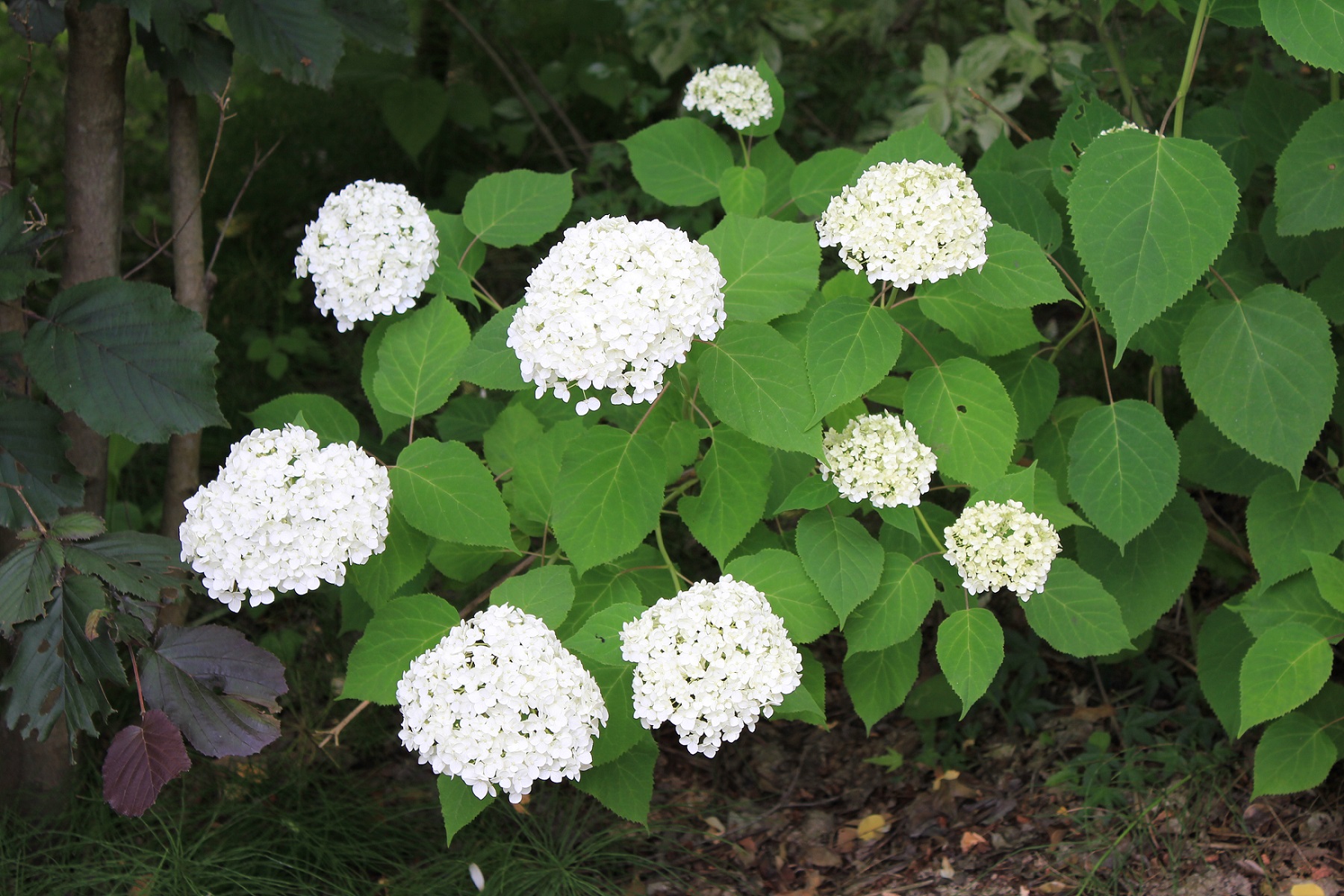概要:ヤブデマリの花がすべて装飾花になった園芸品種。5~6月頃、ピンクと白の咲分けとなる手まり状の花をつける。2色の花もある。性質は丈夫で、庭園樹としての利用が多い。