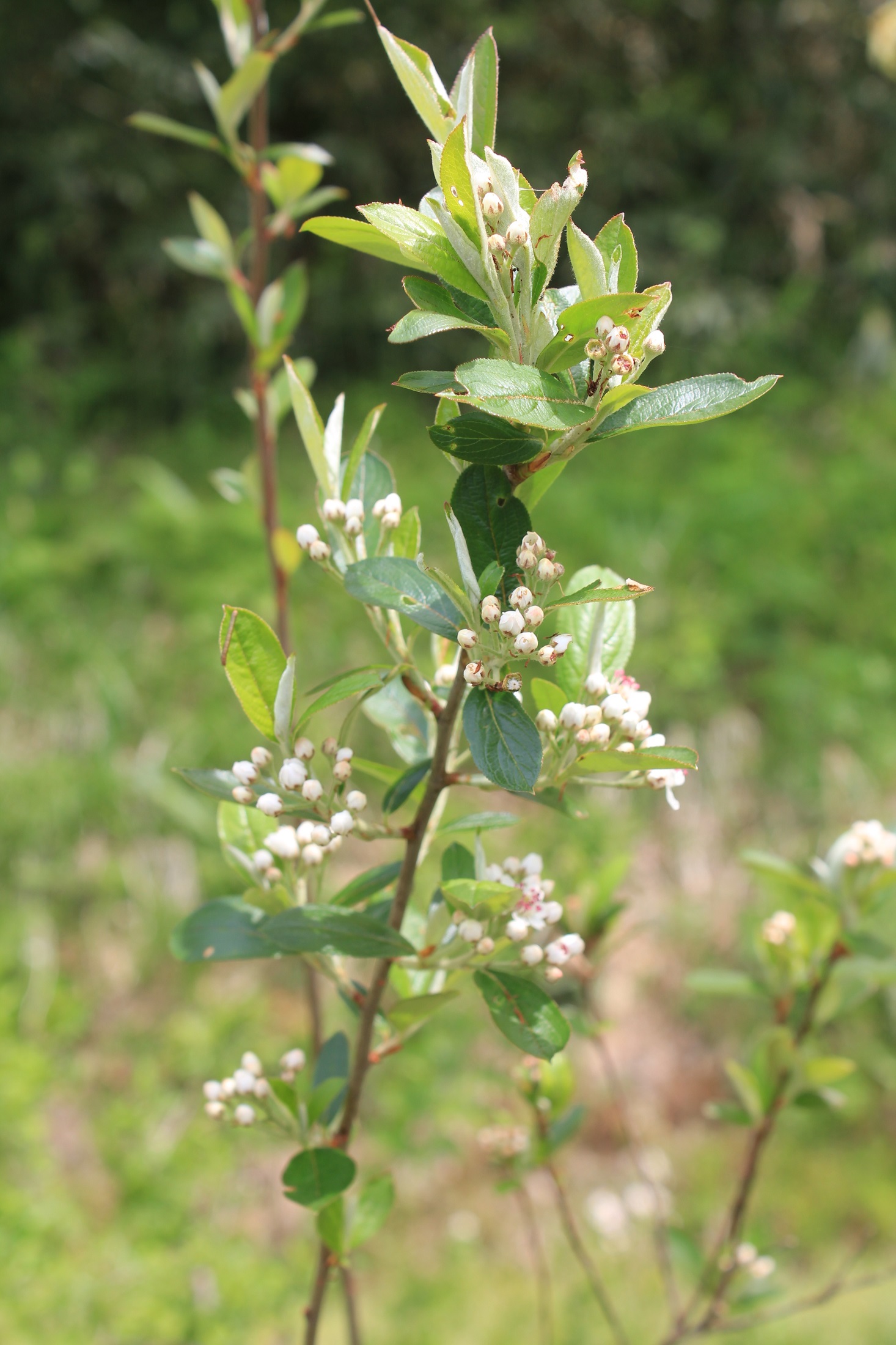 概要:4~5月、枝先に白い小花を多数つける。10~11月、果実は赤く熟し、先端にがく片が残る。甘酸っぱく、食べられる。和名の由来は、材が硬く、丈夫で折れにくいので、鎌の柄によく使われたことによる。枝を火であぶりながら曲げていくと、折れずに輪にすることができる。