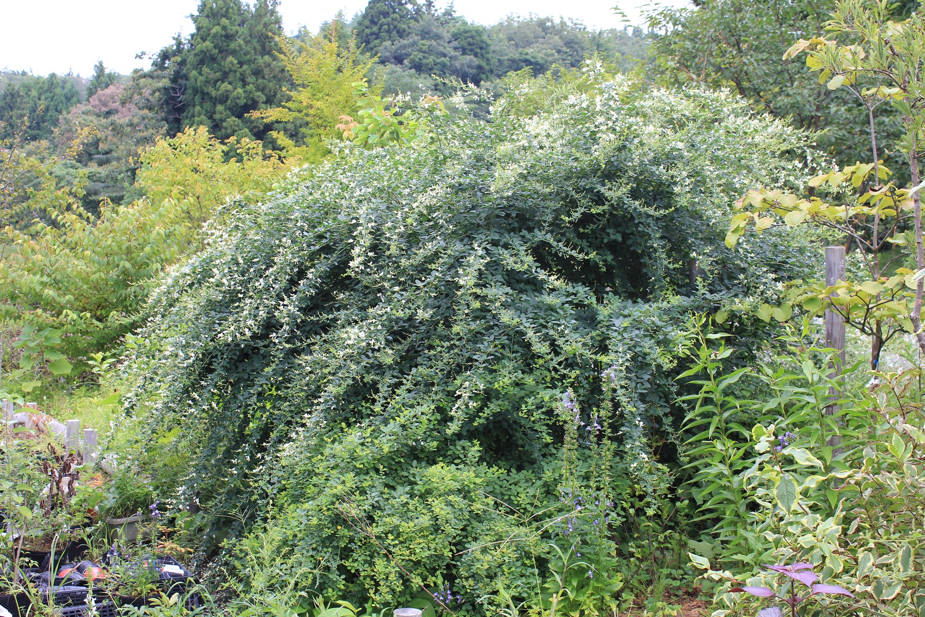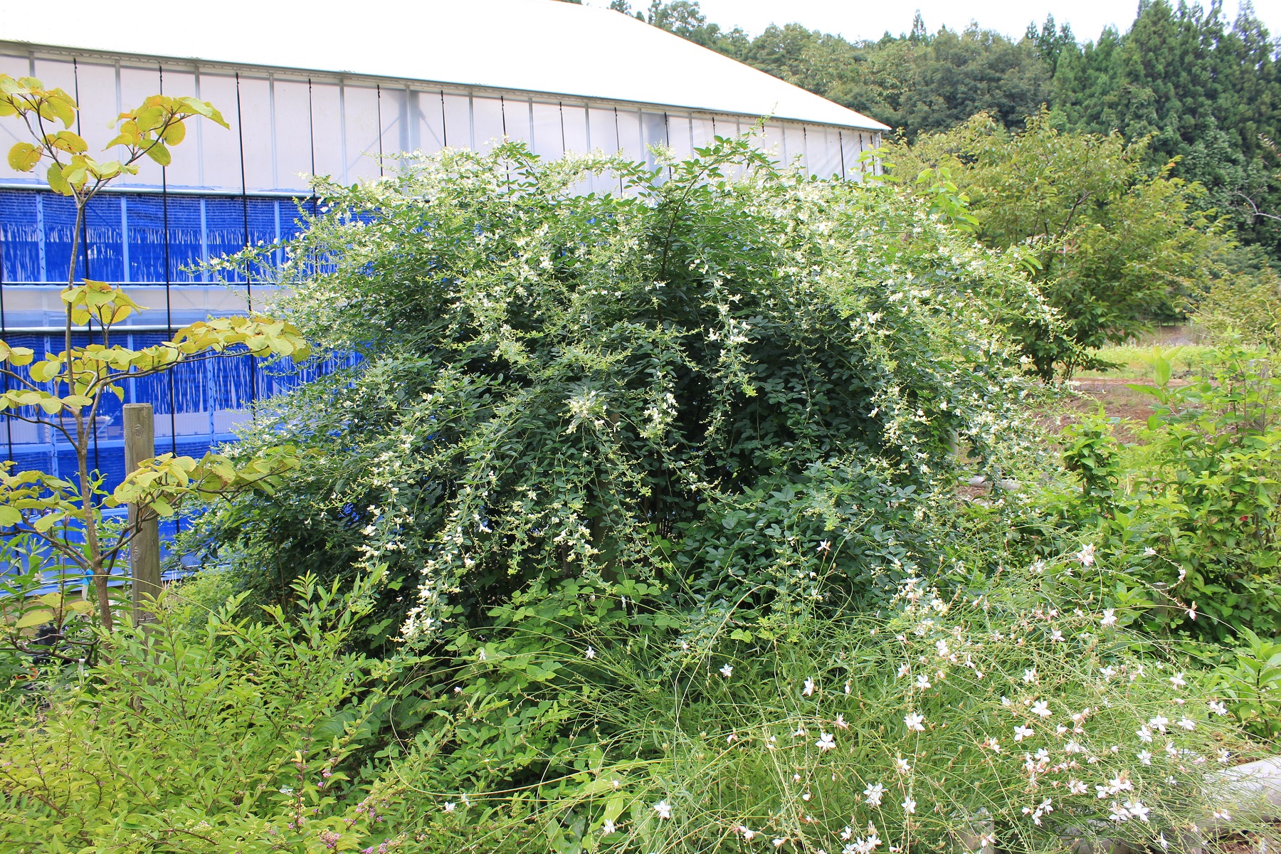 概要:ホンコンエンシスとカピタータの栽培品自然交雑種。6月にクリーム白色花をつける。ホンコンエンシスのもつ耐寒性を受け継いでおり、本種も寒さには強い。(カピタータは寒さには弱い)若木の頃は、枝がたおやかなので。わき枝をせん定するとよい。山口清重氏 作出・命名。