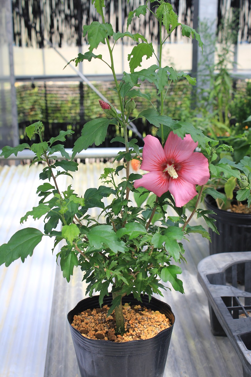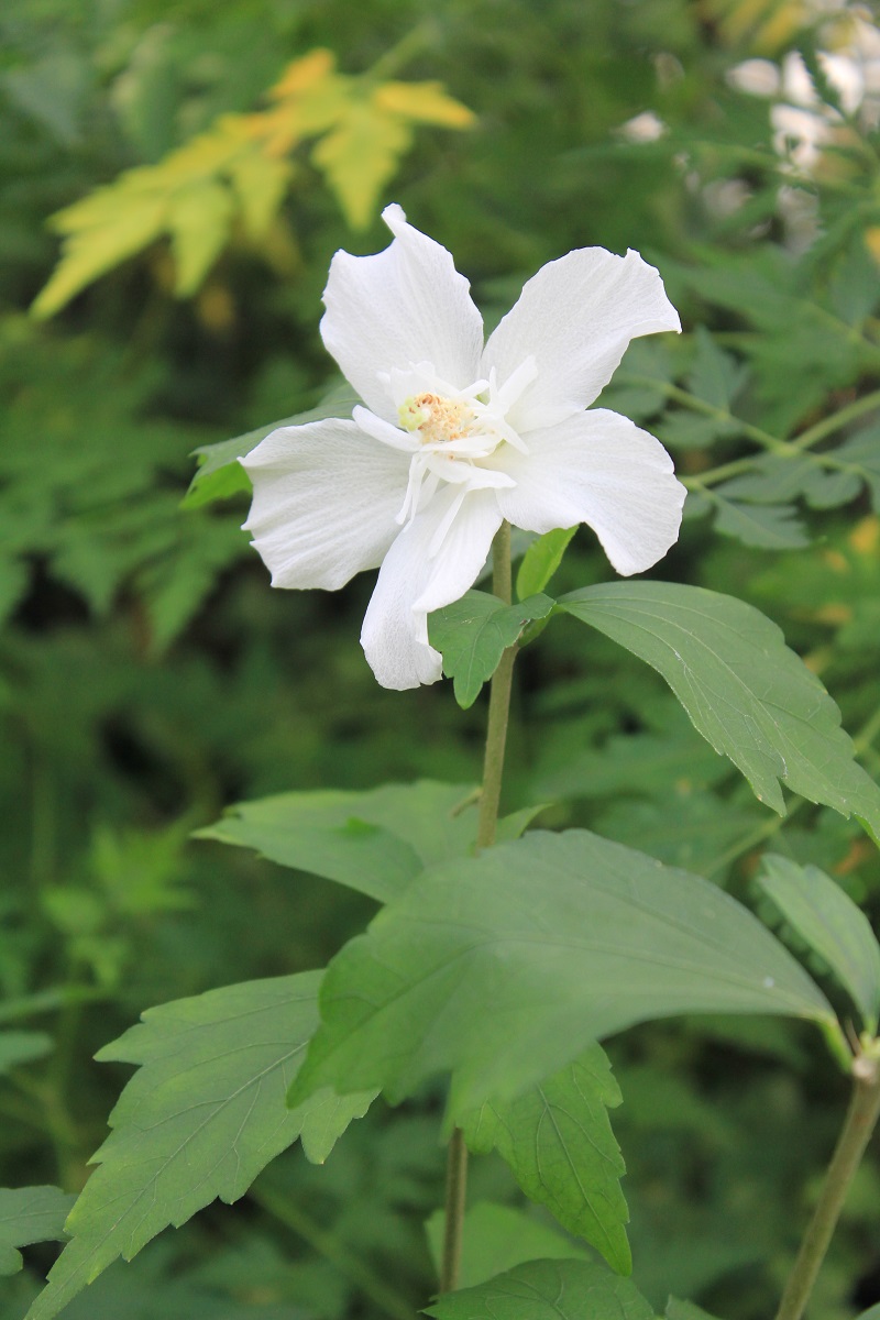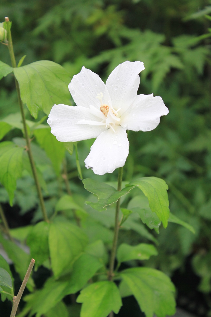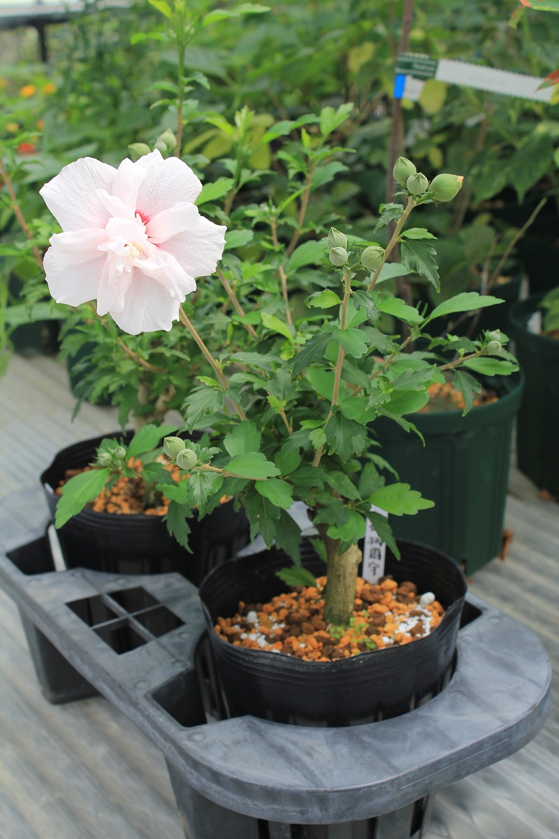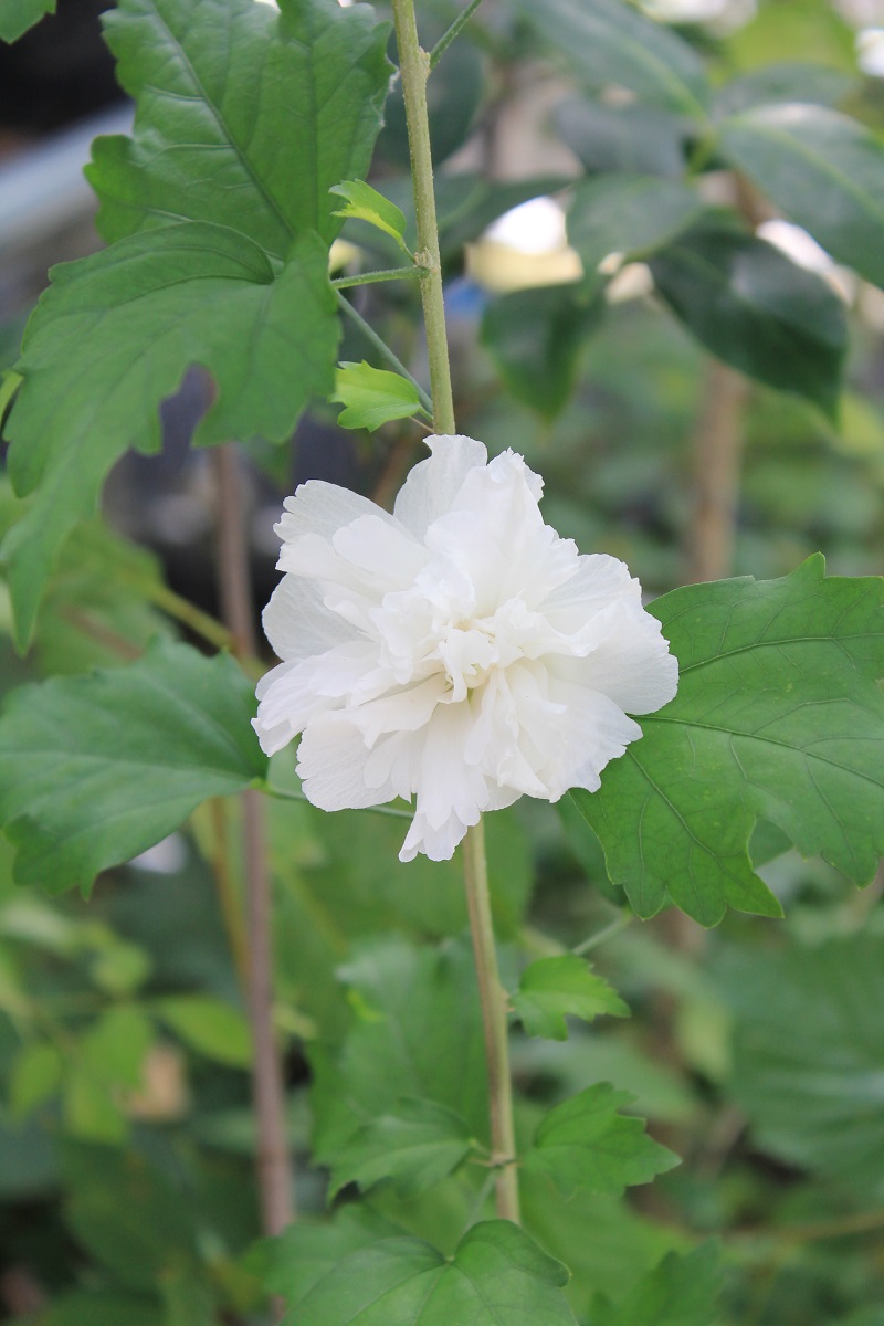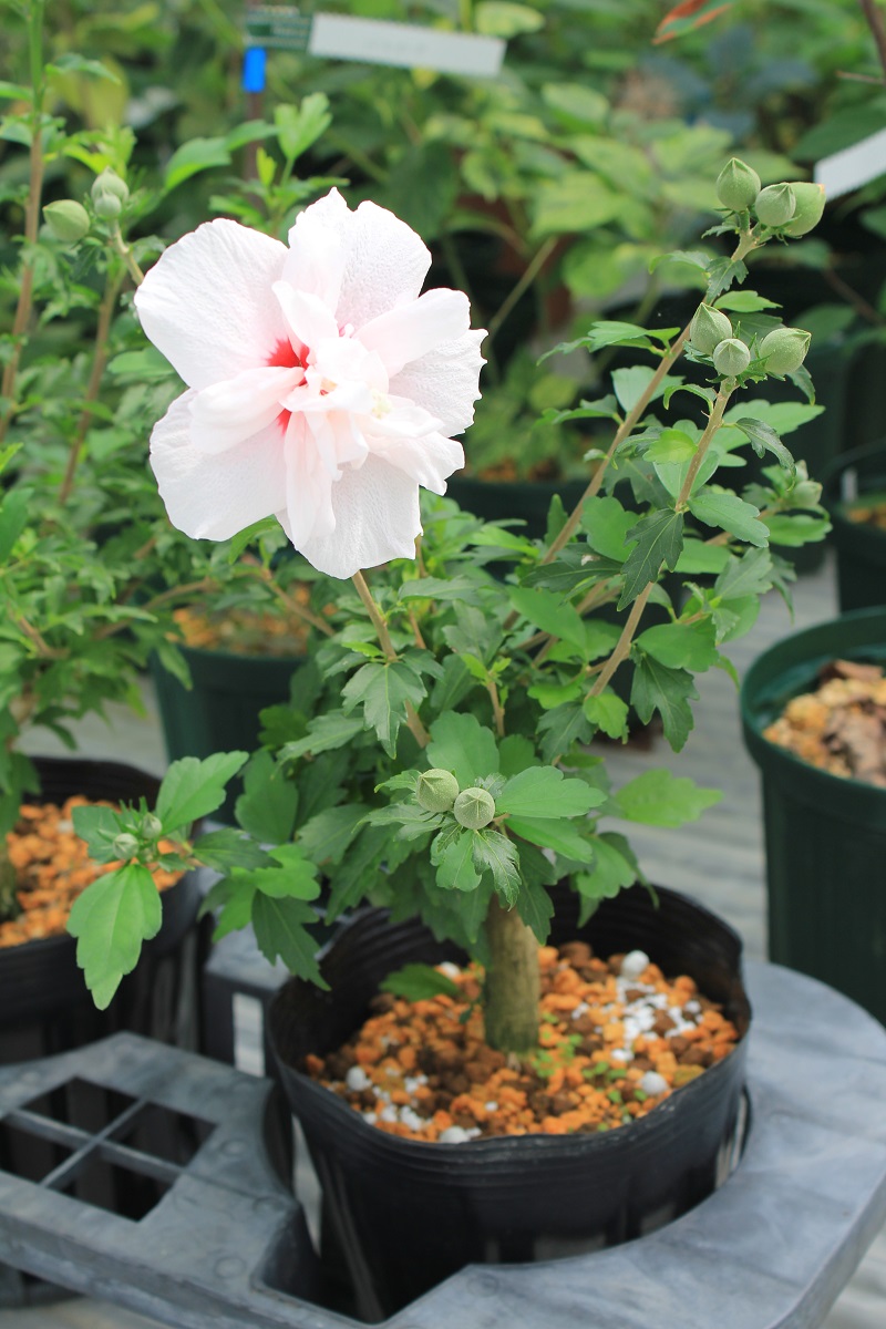 概要:6月、直径15cmの白色大輪花を開く。10月、果実が熟す。樹形が直立するタイプなので、都市部の狭い空間においても利用が可能である。埼玉県 萩原庭樹園さん 作出。