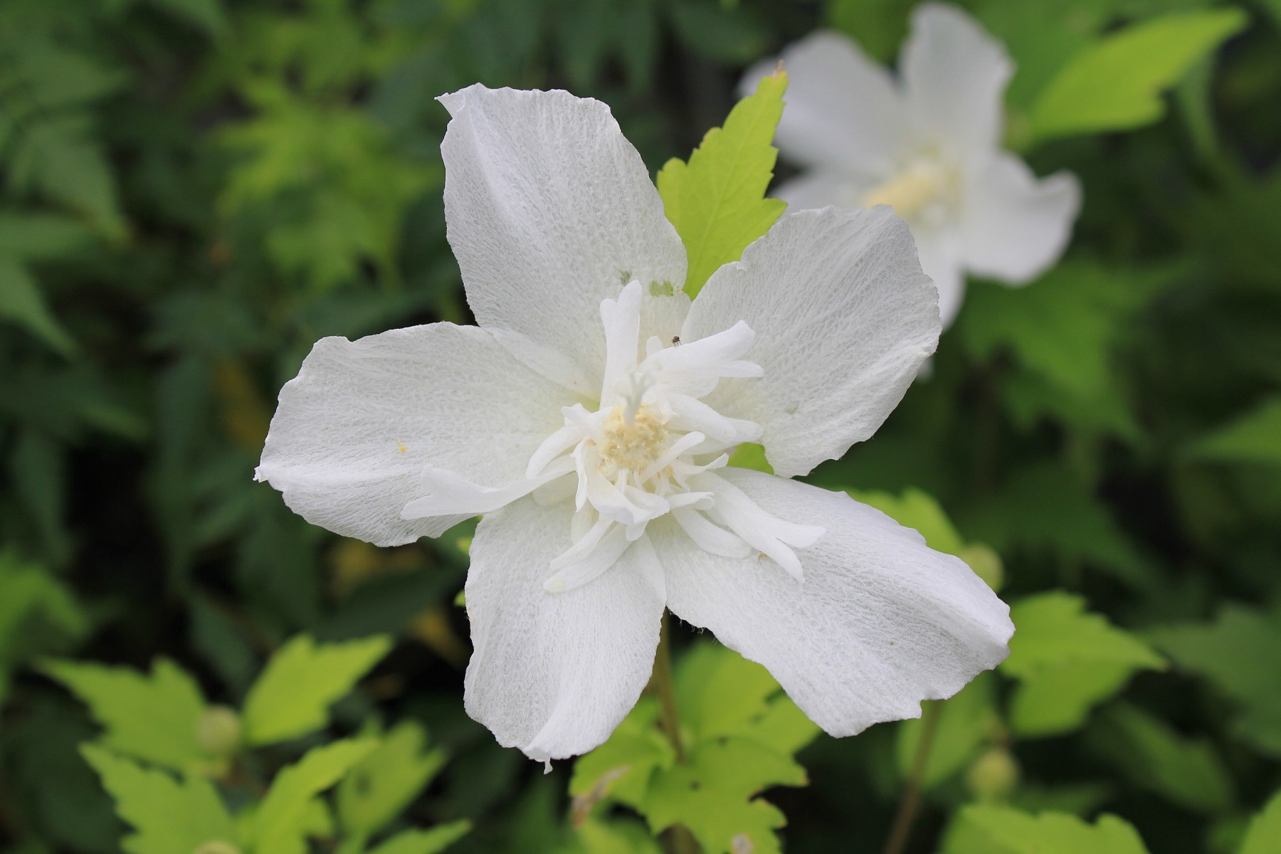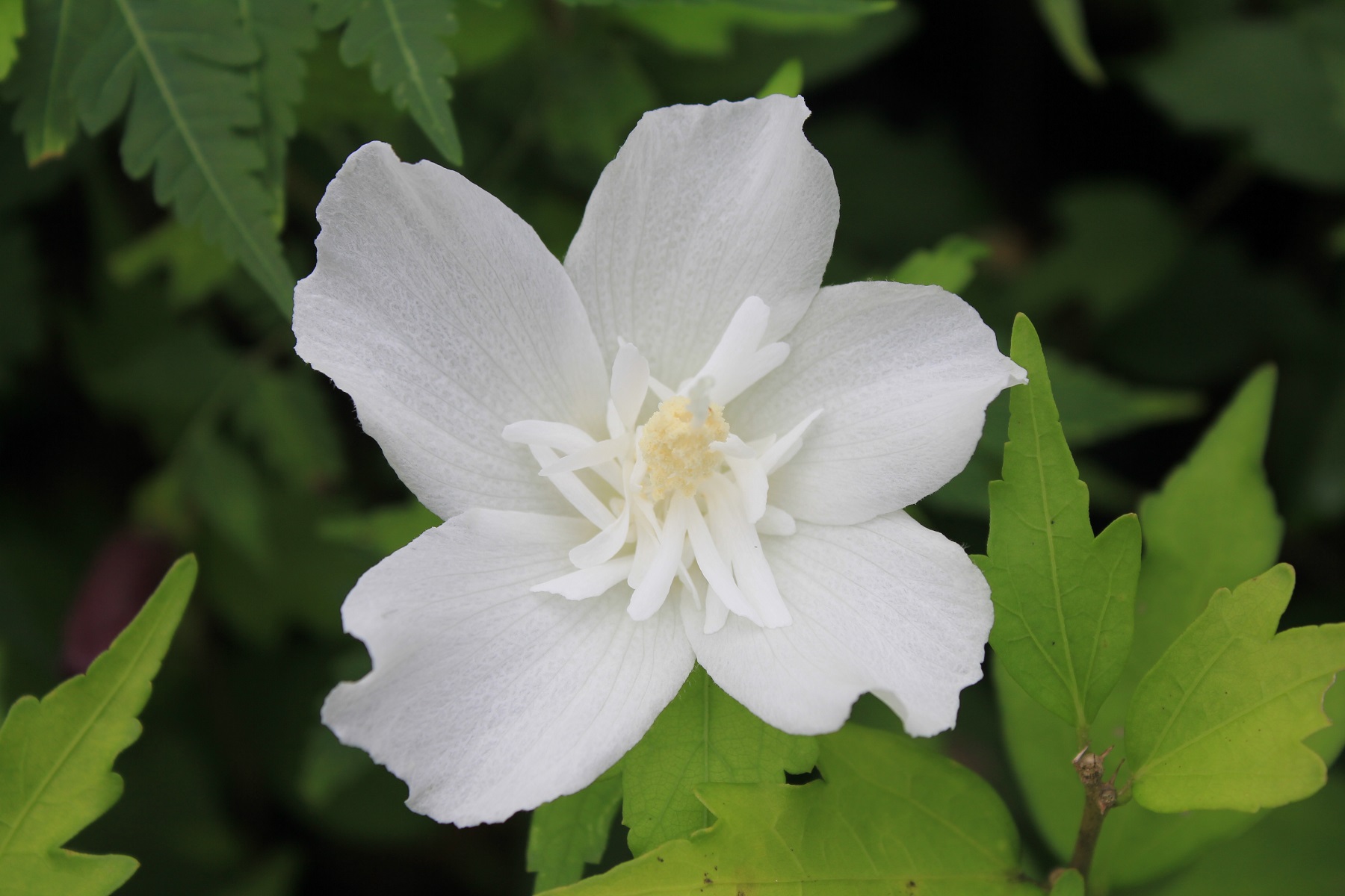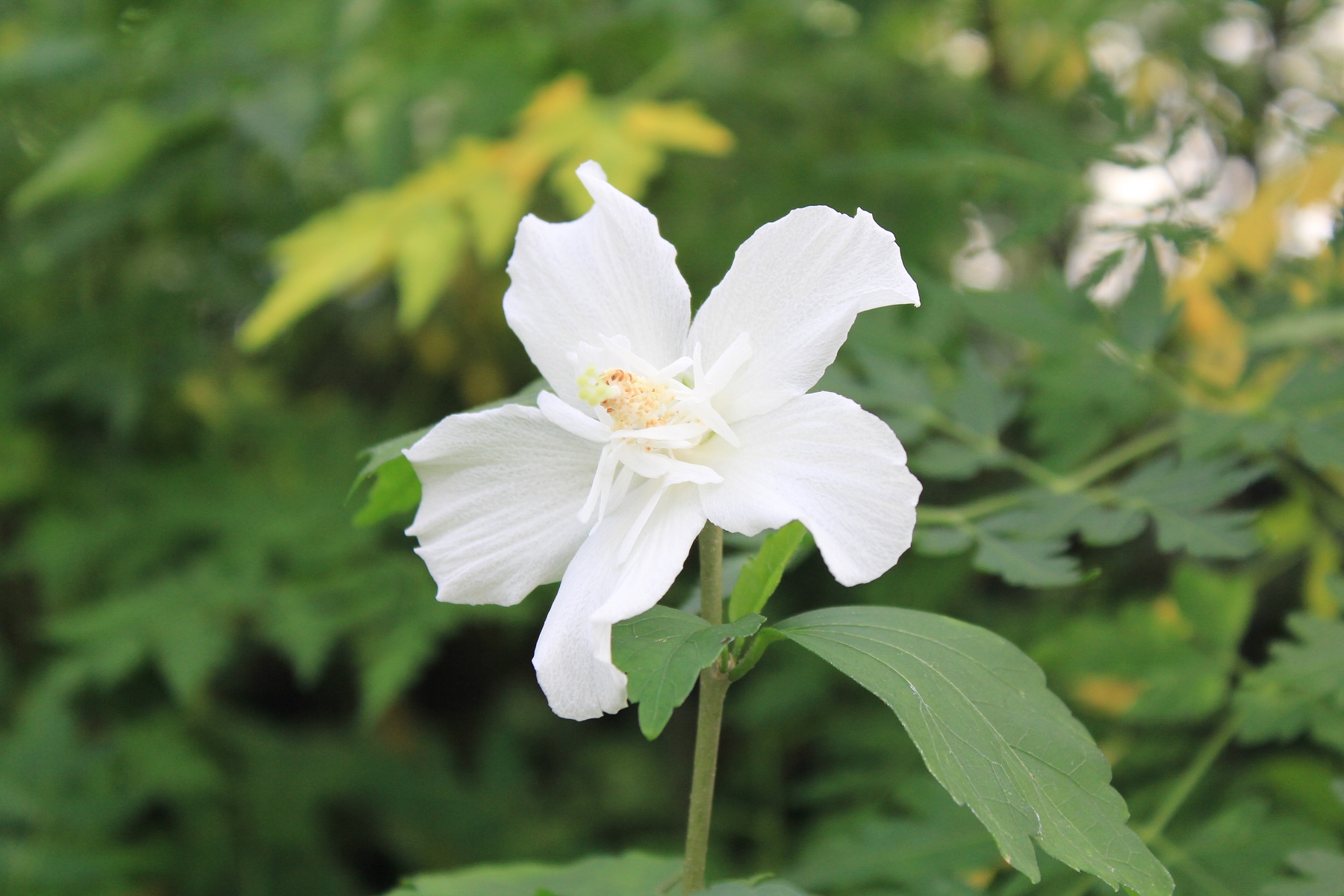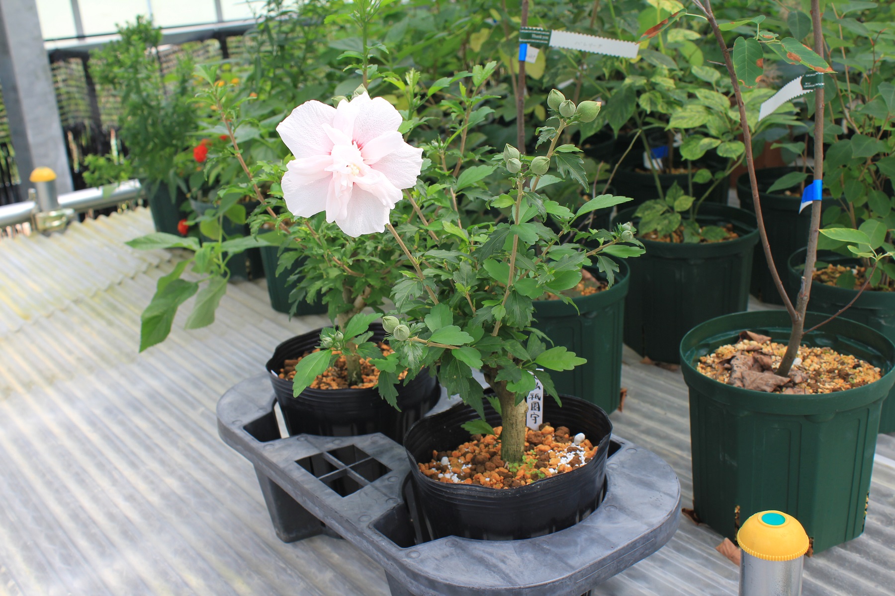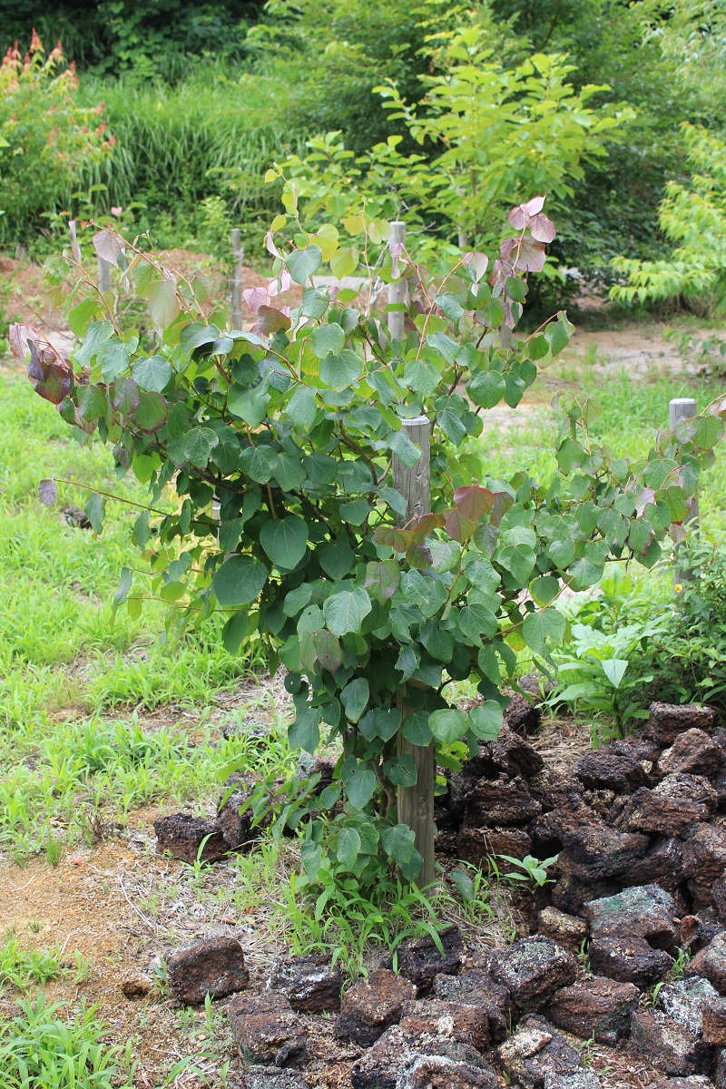 概要:6月、直径15cmの白色大輪花を開く。10月、果実が熟す。樹形が直立するタイプなので、都市部の狭い空間においても利用が可能である。埼玉県 萩原庭樹園さん 作出。