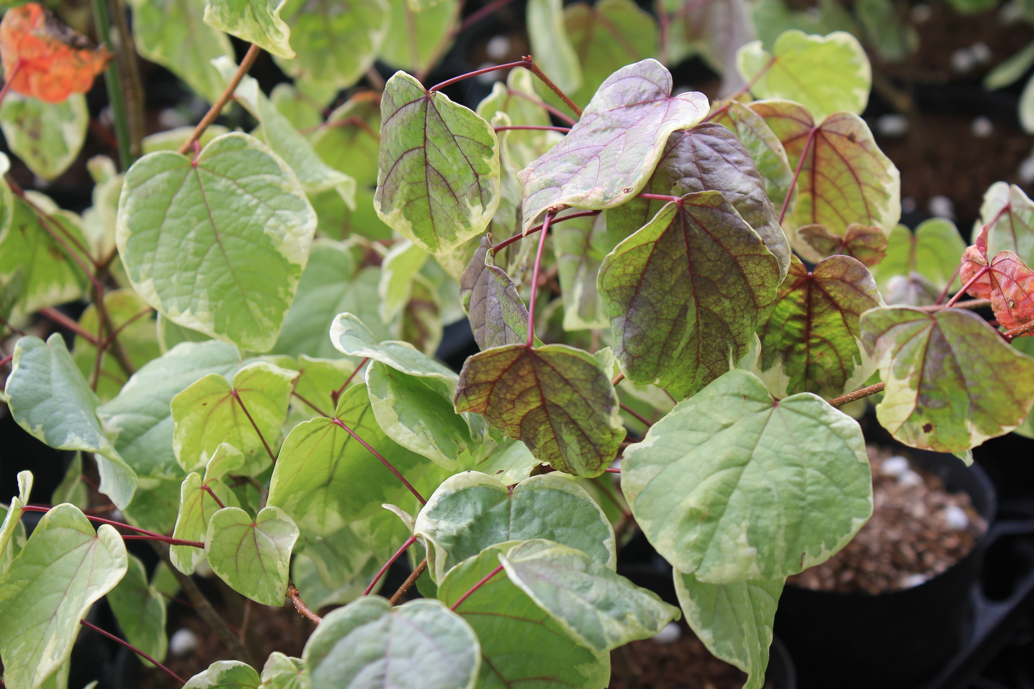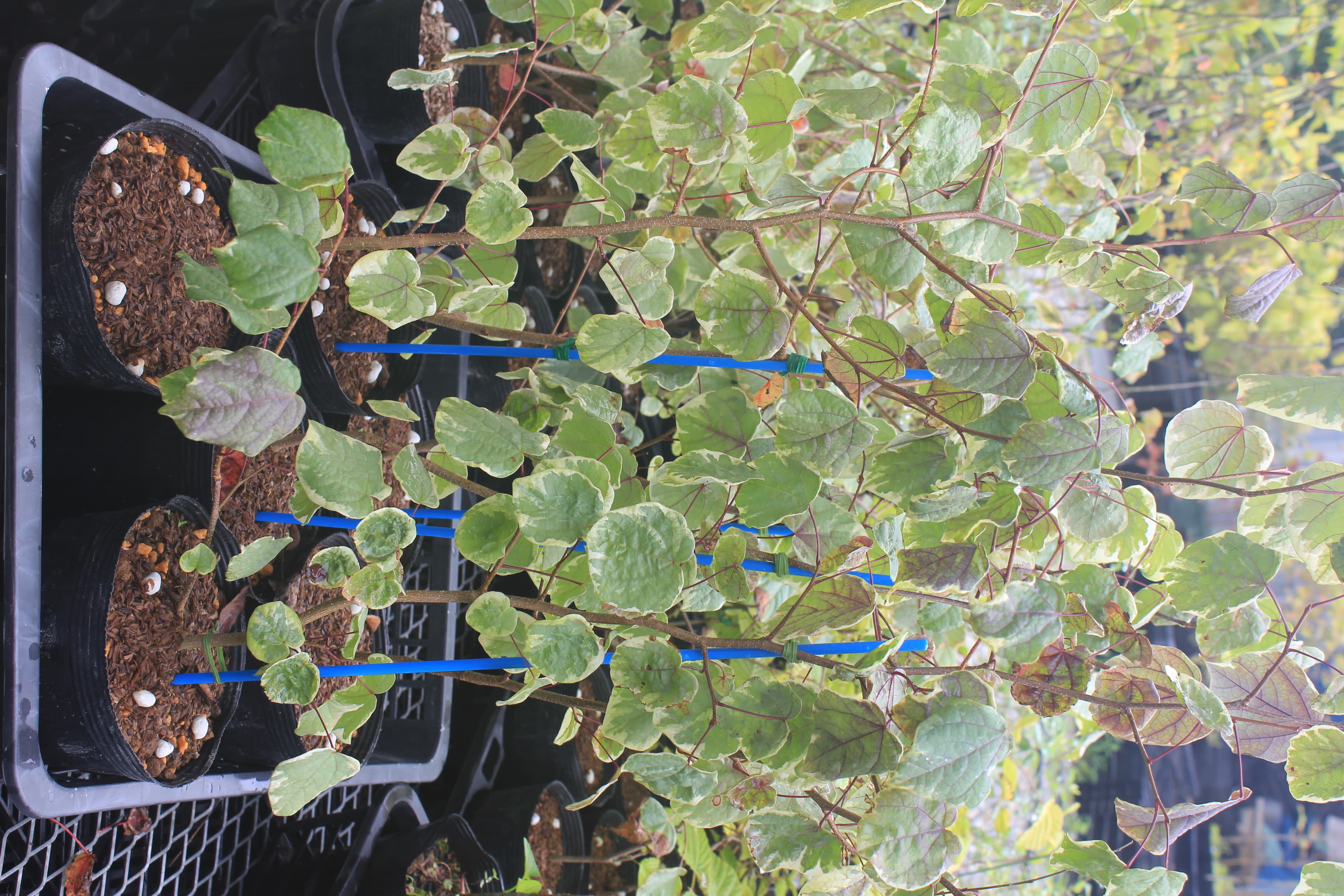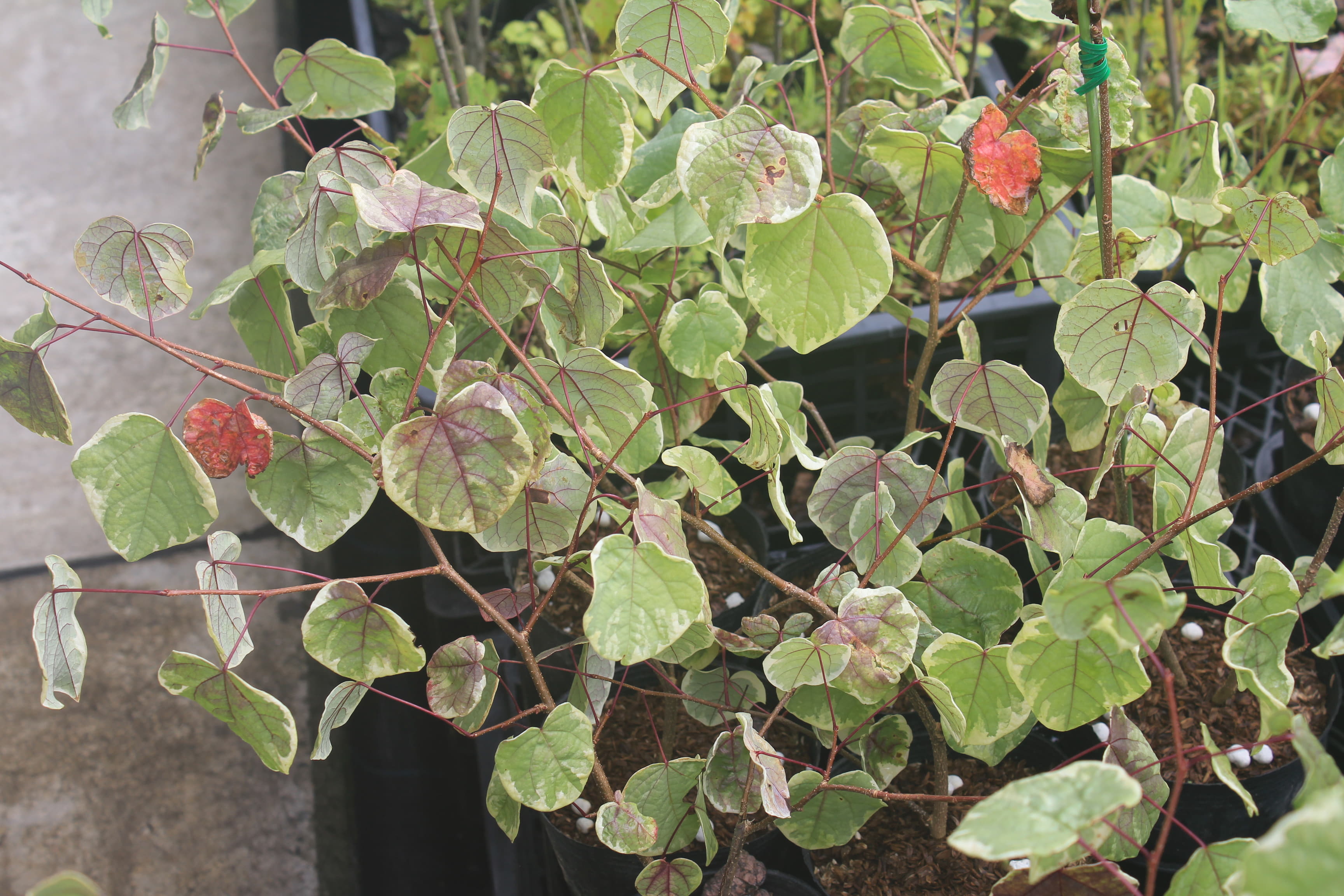 概要:ヤマボウシの斑入葉種で、非常に人目を引く植物である。葉の周囲が白色の斑入葉となり、葉と花が同時に楽しめる。秋には葉がピンクに染まる紅葉が美しい。鉢植え、庭植え、シンボルツリー、ガーデニングに利用する。