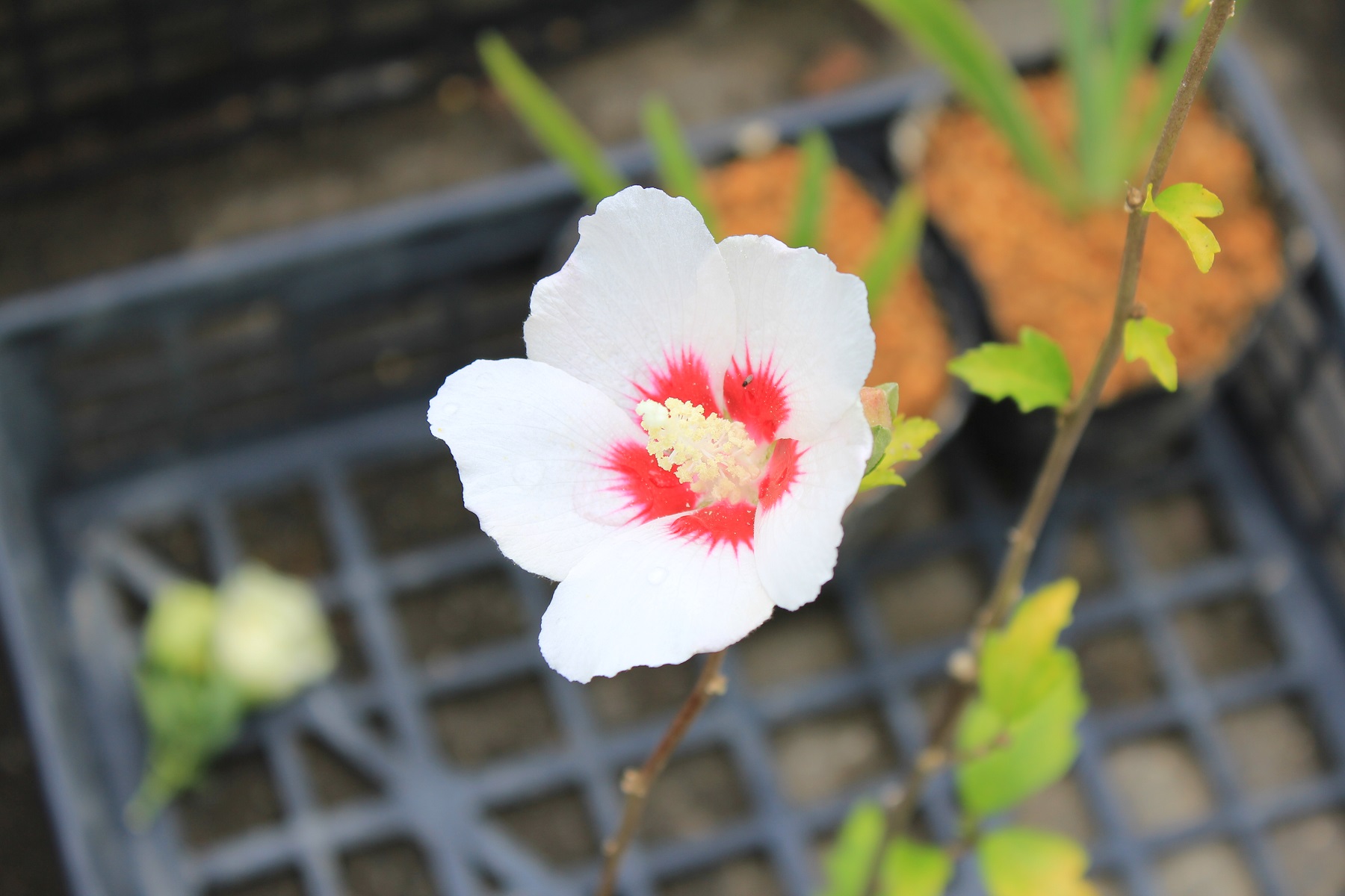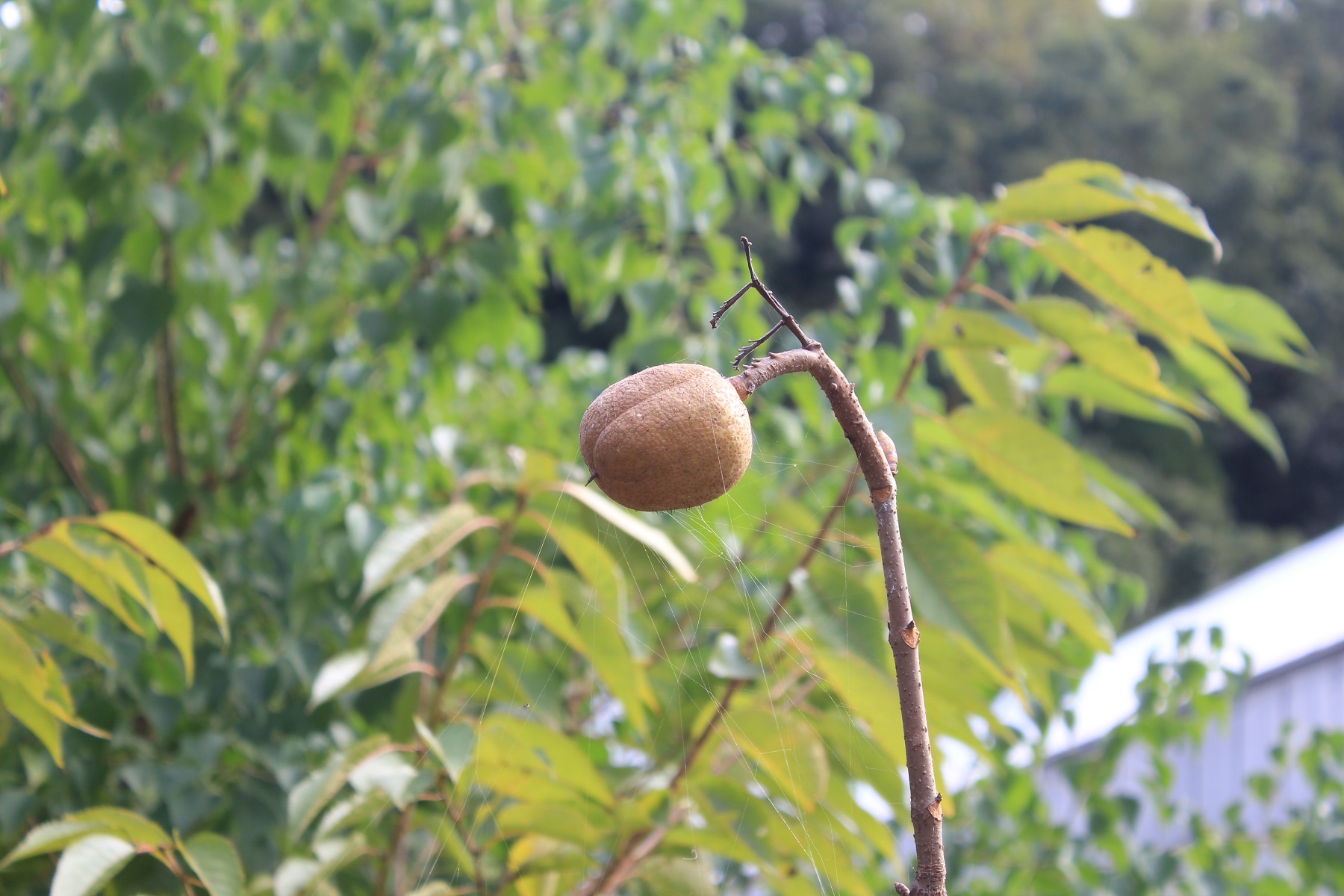 概要:6月、珍しい白色六弁化を開く。10月、果実が熟す。埼玉県 萩原庭樹園さん 作出。