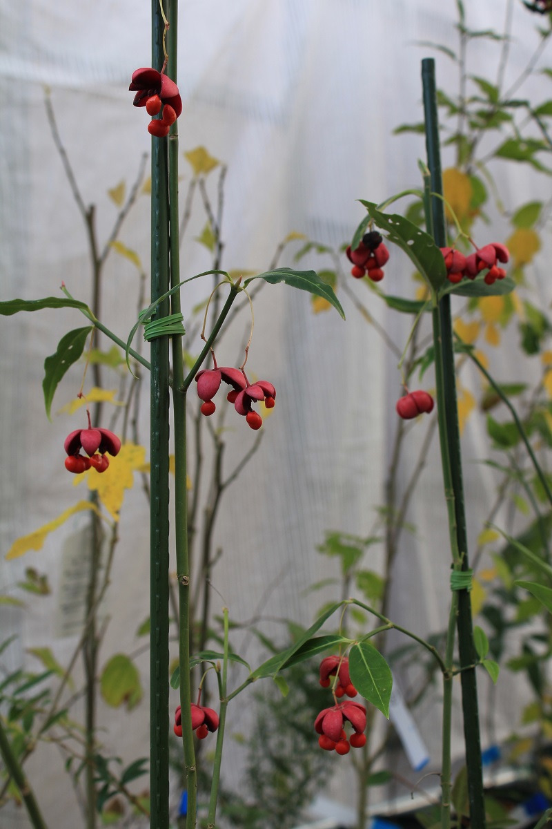 概要:富士山周辺に自生するベニヤマボウシ(f.roea)の実生選抜品種である。総苞片が剣弁・紅色であることが最大の特徴。岩手県で発見された淡紅色の総苞片を持つ(サトミと命名された)個体とは、苞片の形(サトミは丸みを帯びる)が異なる。本種は、富士山一帯の中でも南東面に産する野生品からの実生選抜を重ねて生み出された品種である。鉢植え、庭植え、シンボルツリーなどに利用する。静岡県 山下信夫氏 登録品種。