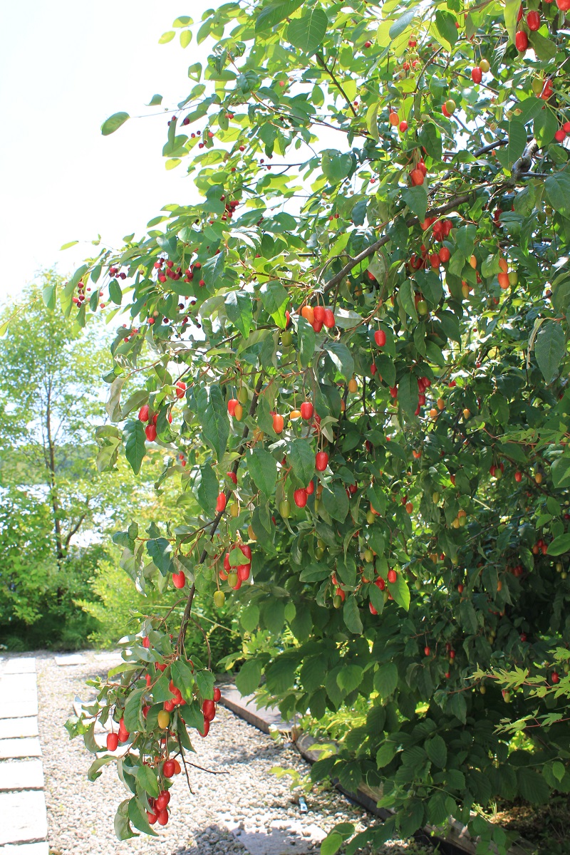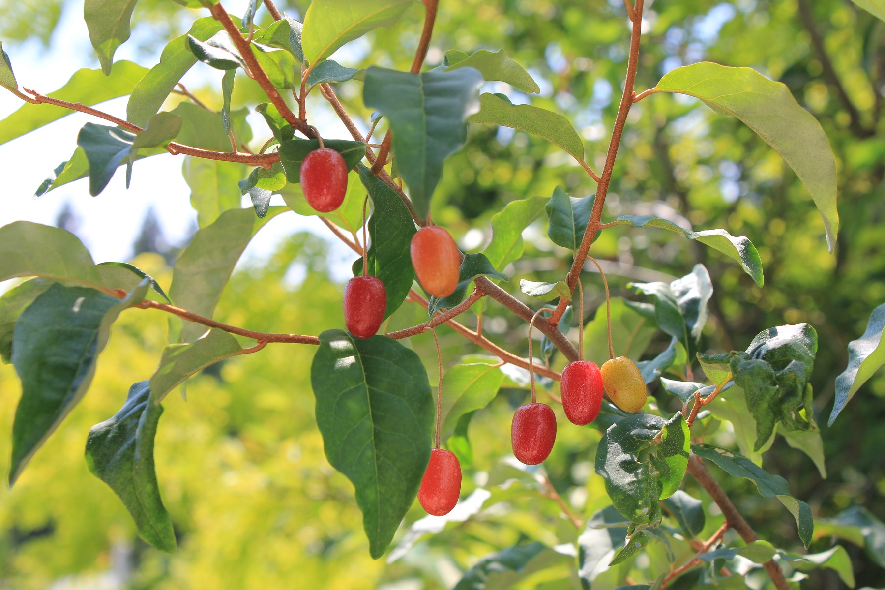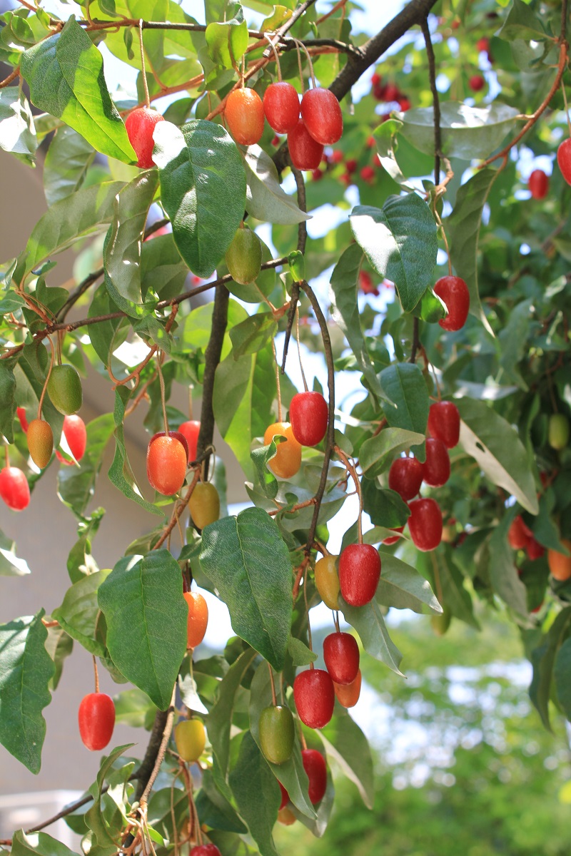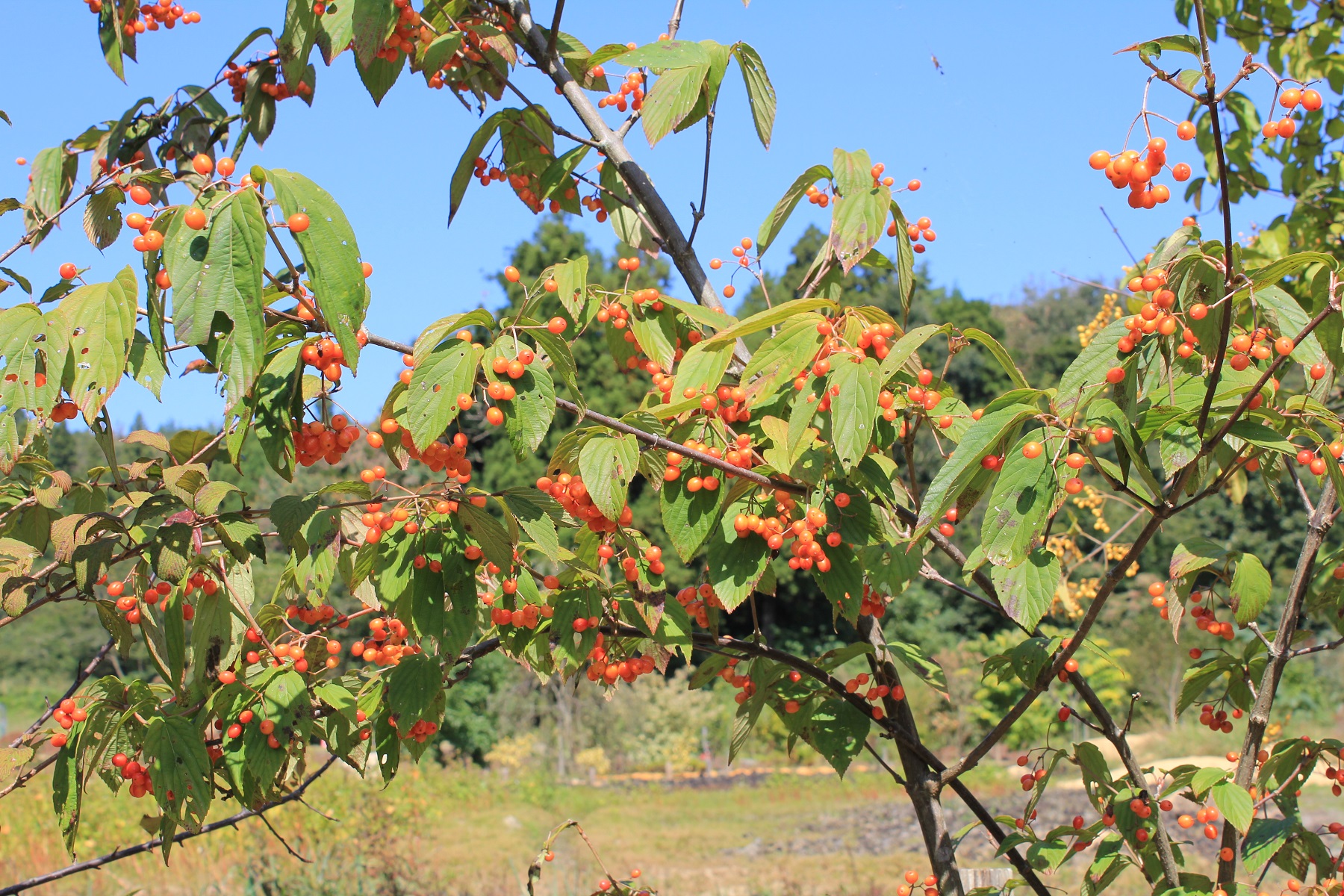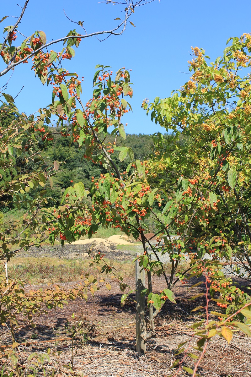 概要:5月、白色花をつける中国産落葉樹。9月、果実が黄色くなる。その後、徐々に赤く色づいて熟す。中国では、薬効のある葉からお茶を作って、僧侶が飲用していたそうです。和名の由来は、秋に果実が垂れ下がる様子による。