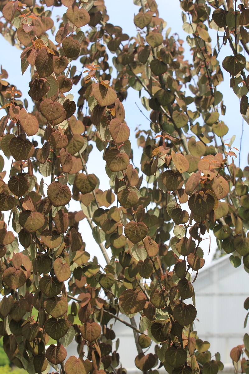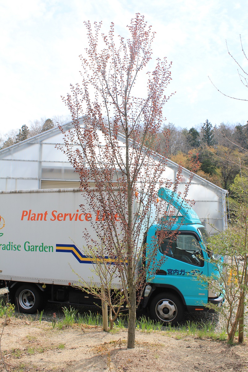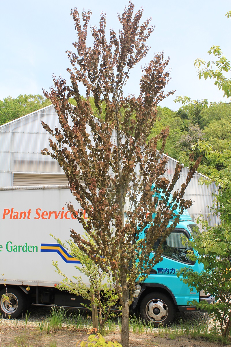 概要:萌芽時より銅葉となり、大変美しい品種です。夏には、ハート形の葉がやや緑色を帯びて、可愛らしく風にそよぎます。自然樹形もまとまって美しい。庭植え、シンボルツリー、景観樹に利用します。