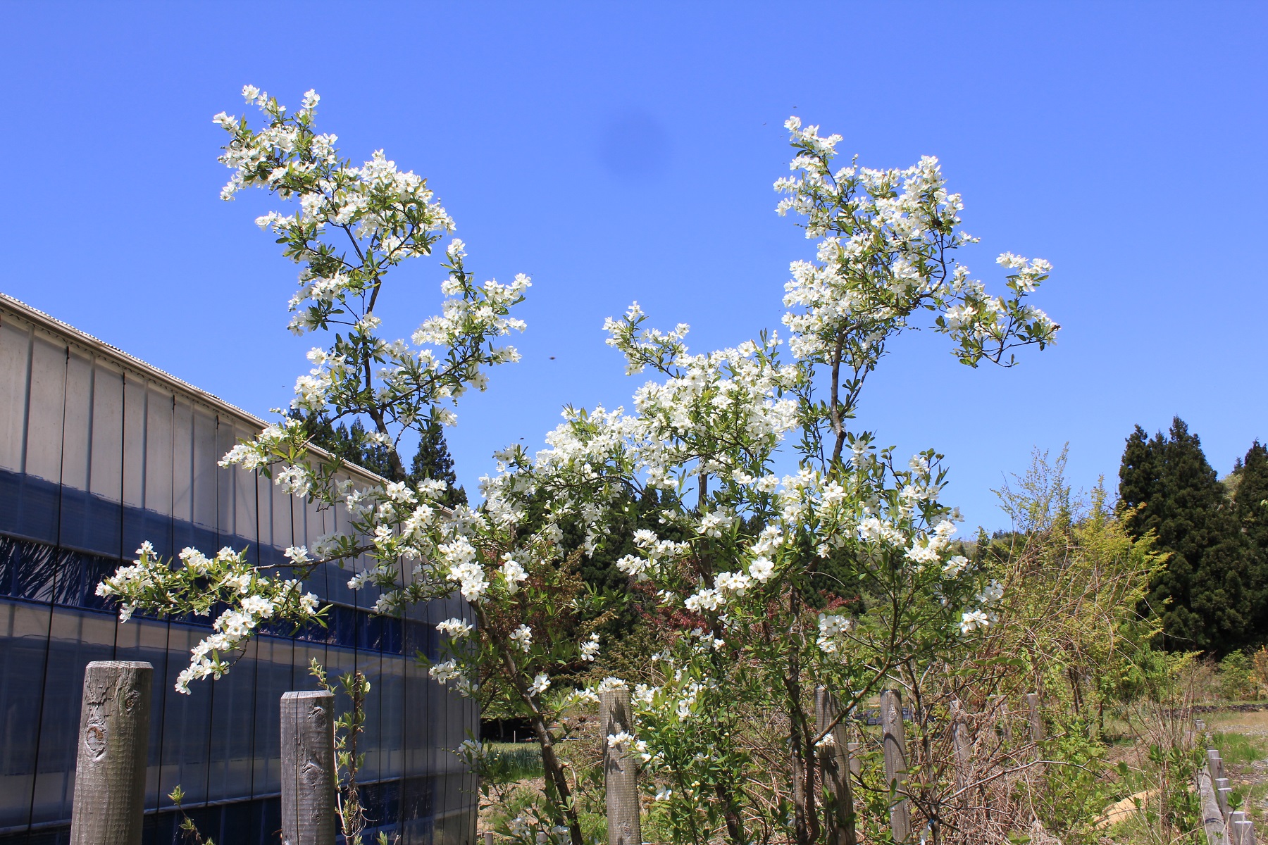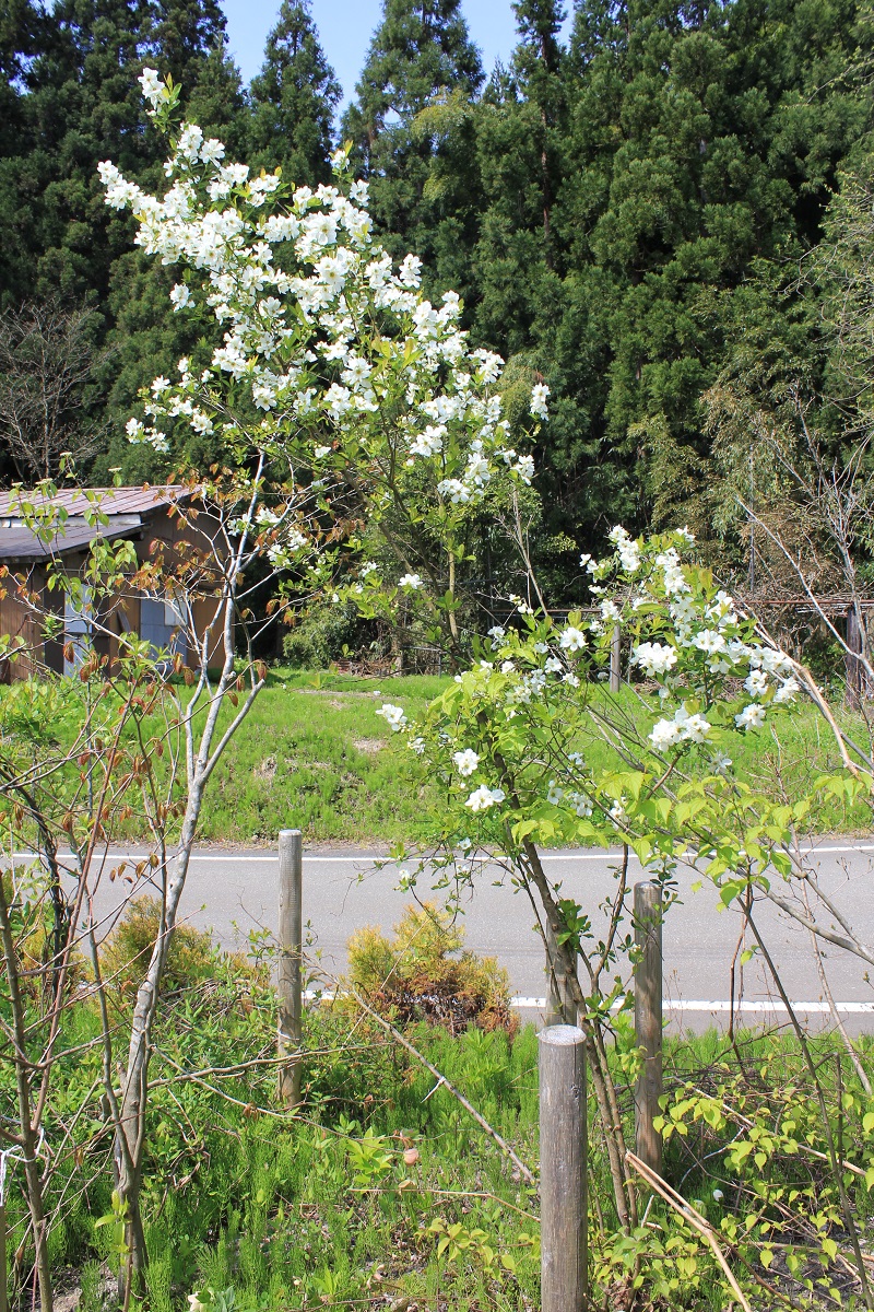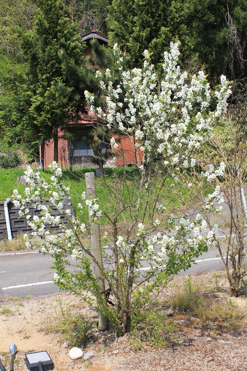 概要:高知県佐川町出身の植物学者 牧野富太郎博士が佐川町内の山林中に自生が見られたヤマザクラの珍種を命名したもの。樹高はあまり大きくならず、幼苗の頃から開花がみられる小型の桜である。4月中旬(東京標準)に、直径3cmほどのきれいな白色花をつける。鉢植え、庭植えに好適。、