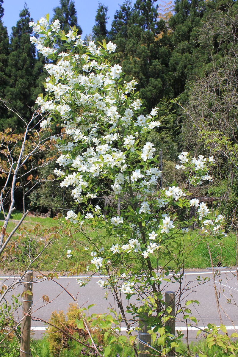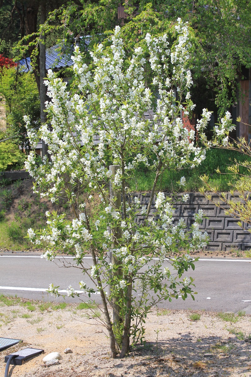 概要:4~5月、枝先の総状花序に白色花を開く。株全体をおおう程、多数の花をつける。中国(揚子江下流域)原産の落葉樹。鉢植え、庭植え、切り枝、シンボルツリーなどに利用する。