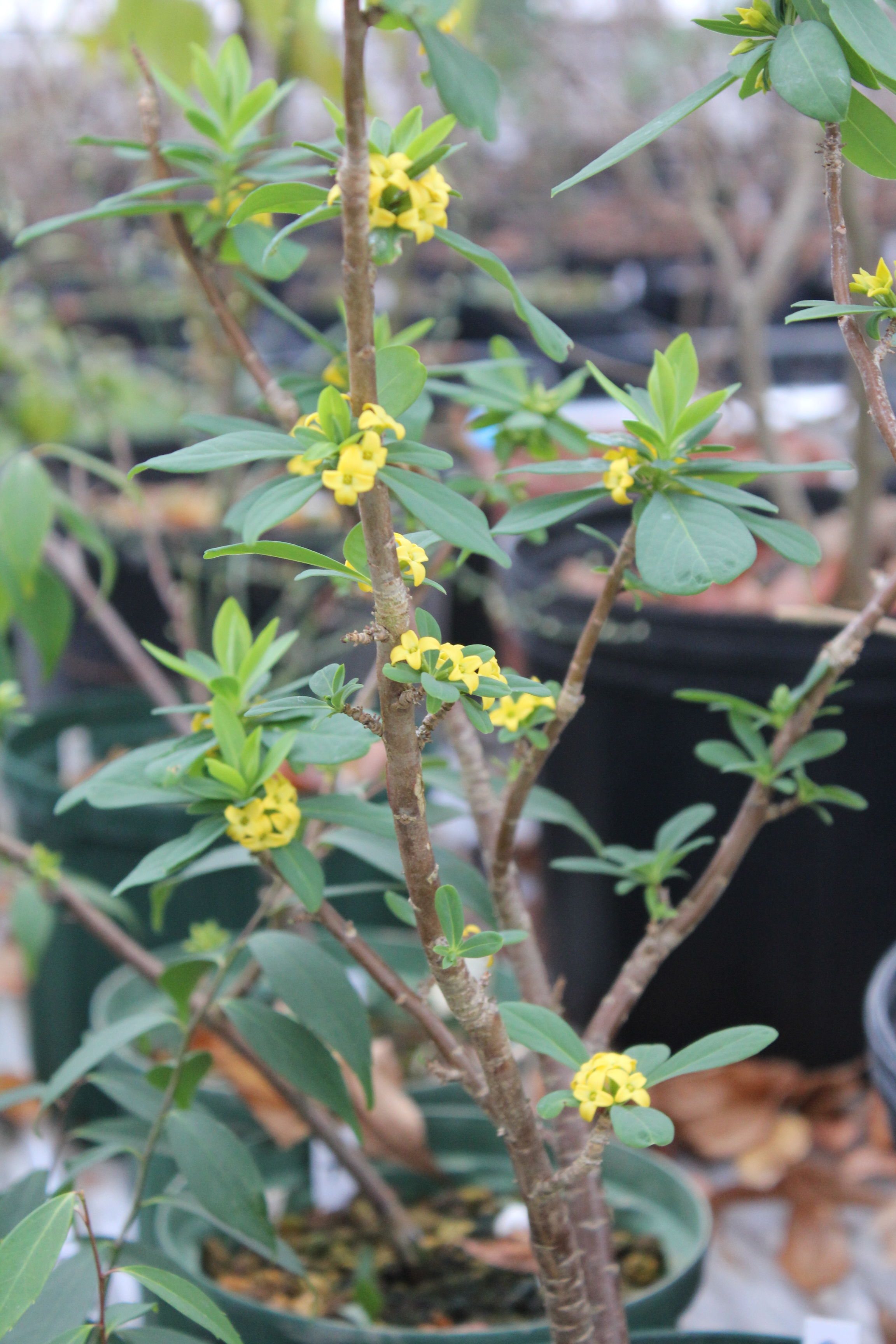概要:ヒマラヤから雲南・四川両省そしてビルマまでと、ミツマタの分布は広いが、中でも本種は落葉タイプの中国産ミツマタである。中国では、製紙原料として利用しているが、本種は黄金種の大輪花が美しいので、観賞用として広く各地で栽培されている。3~4月開花。丈夫で成育がよい。鉢植え、庭植え、ガーデニングによい。