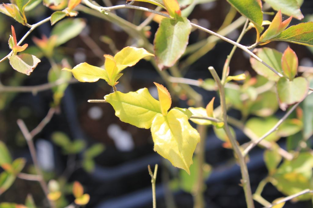 概要:ナンキンハゼの品種で、萌芽時の葉が黄色く美しい。6~7月、枝先や葉腋に総状花序をだし、芳香ある黄色の花をつける。秋には紅葉が美しい。鉢植え、庭植え、ガーデニング、シンボルツリーなどに利用する。白いロウ質に包まれた種子からロウや油をとる。