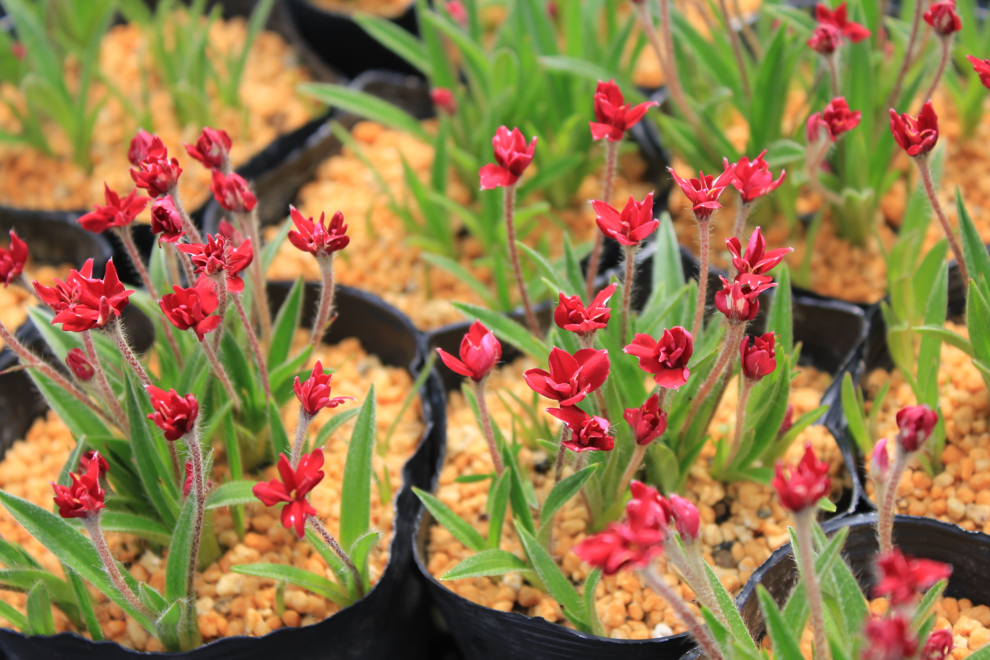 商品名:アッツ桜 ’ルビーの輝き’規格:10.5cmポット 高さ15cm 価格:500円在庫:20納品時期の目安:4月~6月